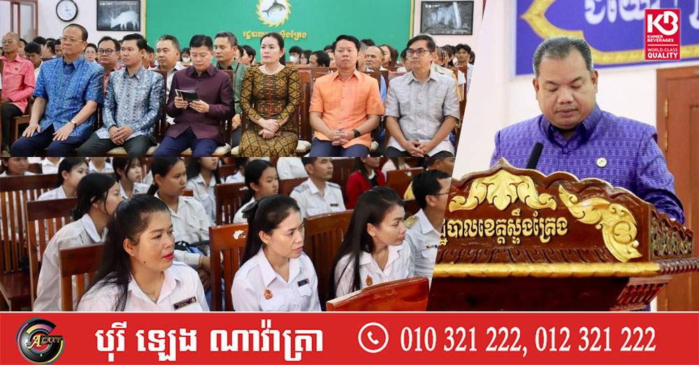 (ស្ទឹងត្រែង)៖ រដ្ឋបាលខេត្តស្ទឹងត្រែង សហការជាមួយមន្ទីរវប្បធម៌ និងវិចិត្រសិល្បៈខេត្ត បានរៀបចំមិទ្ទិញអបអរសាទរទិវាវប្បធម៌ជាតិ ៣ មីនា លើកទី២៨ ឆ្នាំ២០២៦ ក្រោមប្រធានបទ «យុវជន ដើម្បីវប្បធម៌ជាតិ» នៅសាលប្រជុំធំ សាលាខេត្តស្ទឹងត្រែង នៅរសៀលថ្ងៃទី១៩ ខែមីនា ឆ្នាំ២០២៦។