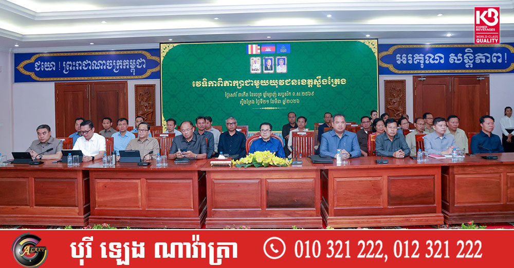 ការណែនាំពីសំណាក់លោកបណ្ឌិត ជ្រុន ថេរ៉ាវ៉ាត បានធ្វើឡើងនាឱកាសអញ្ជើញតំណាងដ៏ខ្ពង់ខ្ពស់សម្តេចមហាបវរធិបតី ហ៊ុន ម៉ាណែត អនុប្រធានគណបក្សប្រជាជនកម្ពុជា និងជាប្រធានយុវជនគណបក្សថ្នាក់កណ្តាល ក្នុងវេទិកា «ពិភាក្សាជាមួយយុវជនខេត្តស្ទឹងត្រែង» នាព្រឹក ថ្ងៃទី២១ ខែមីនា ឆ្នាំ២០២៦នេះ។