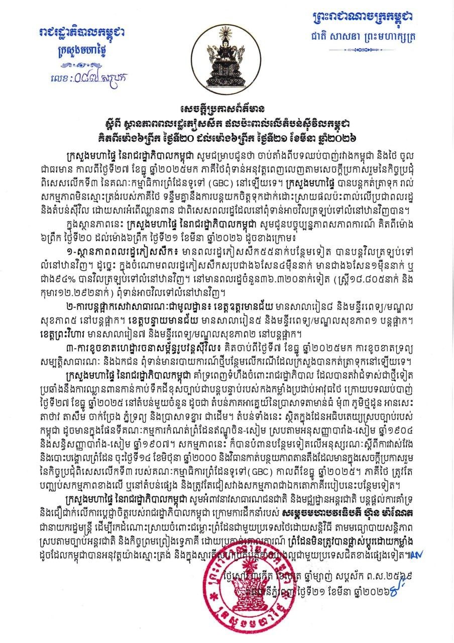 ខាងក្រោមនេះ ជាសេចក្ដីប្រកាសព័ត៌មានរបស់ក្រសួងមហាផ្ទៃ៖