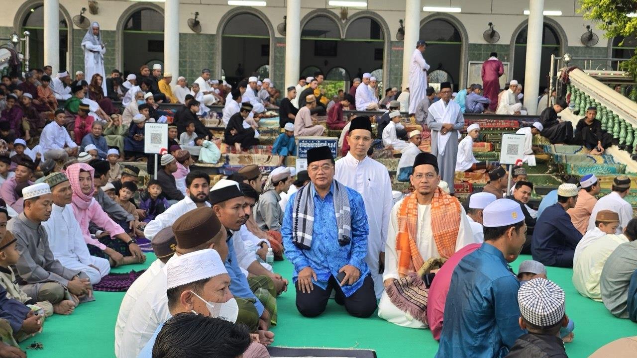 ឆ្លៀតឱកាសសំណេះសំណាល ជាមួយសាសនិកឥស្លាម ដែលបានអញ្ជើញចូលរួមថ្វាយបង្គំនៅទីនោះ លោកបណ្ឌិត អូស្មាន ហាស្សាន់ បានលើកឡើងថា សាសនិកឥស្លាមកម្ពុជាទូទាំងប្រទេស មានឱកាសចូលរួមយ៉ាងសប្បាយរីករាយក្នុងពិធីបុណ្យនេះ គឺជាចំណែកមួយដែលបានកើតឡើងដោយសារកត្តាសុខសន្តិភាព។