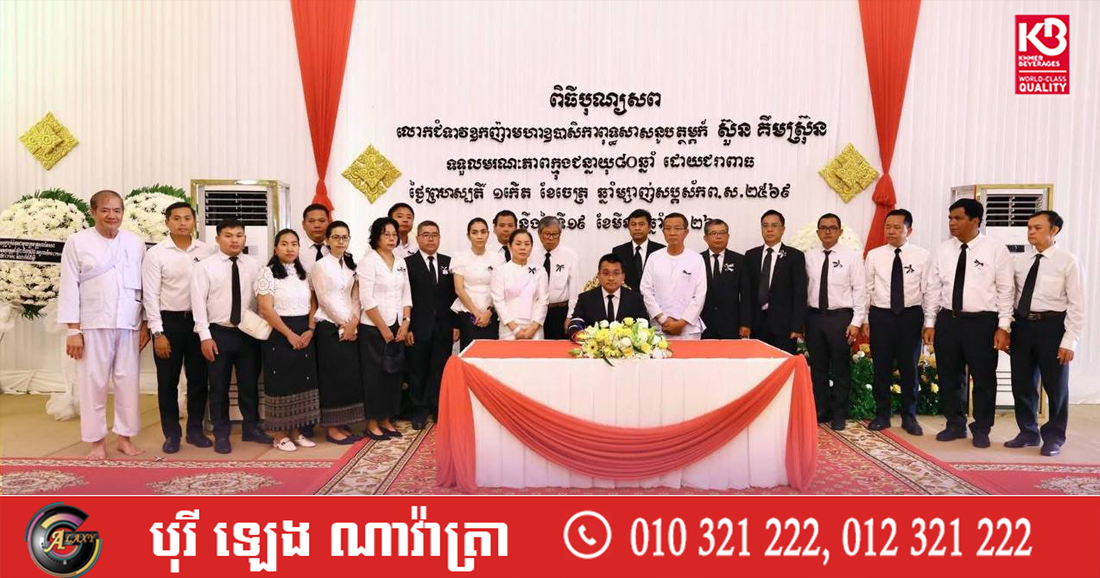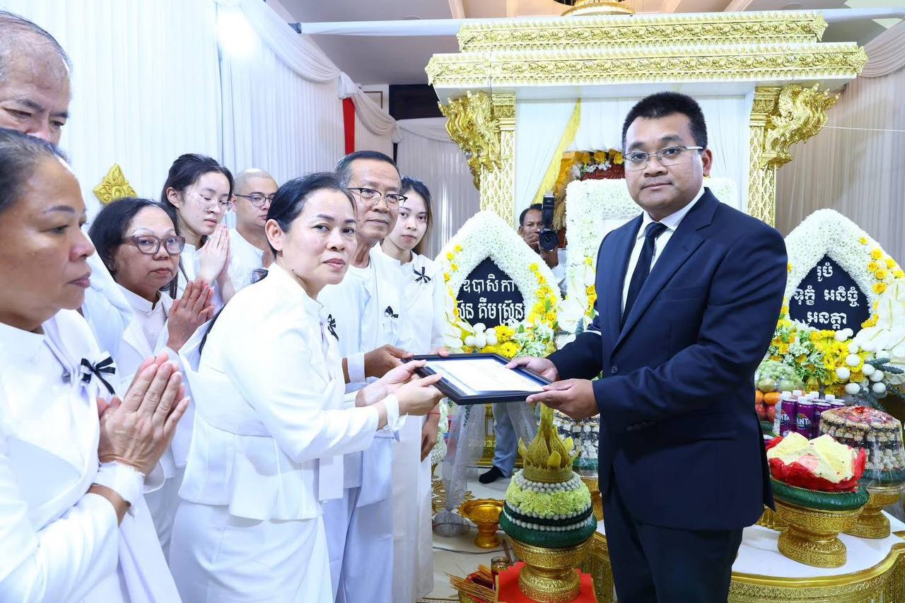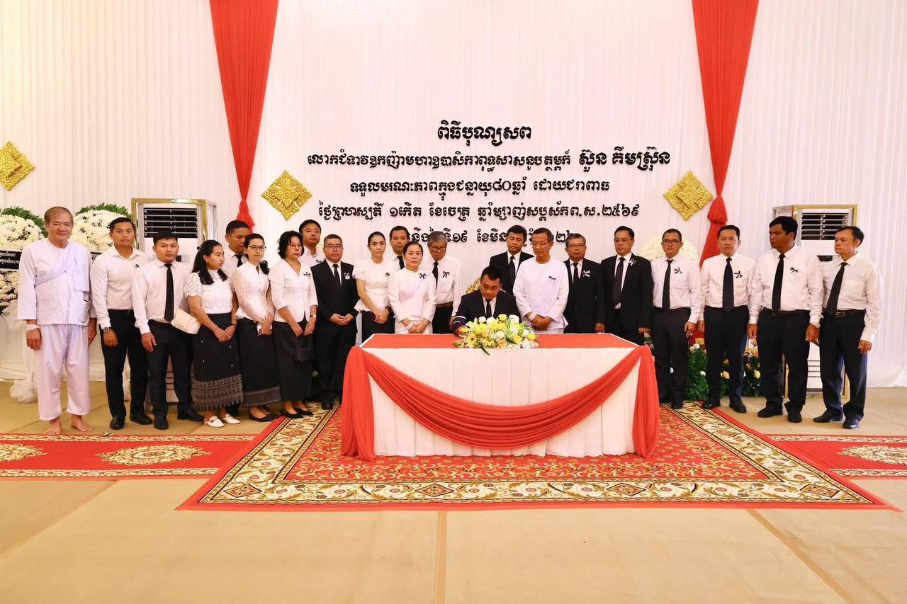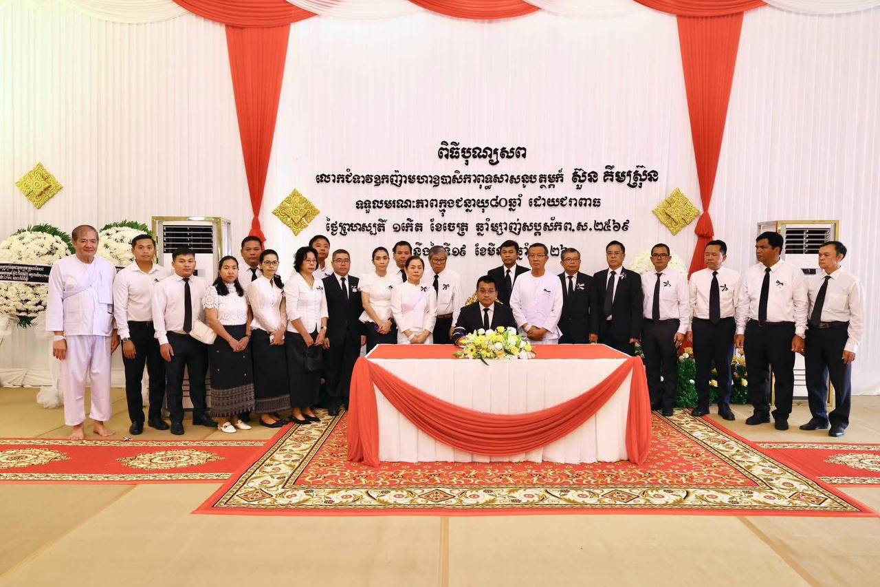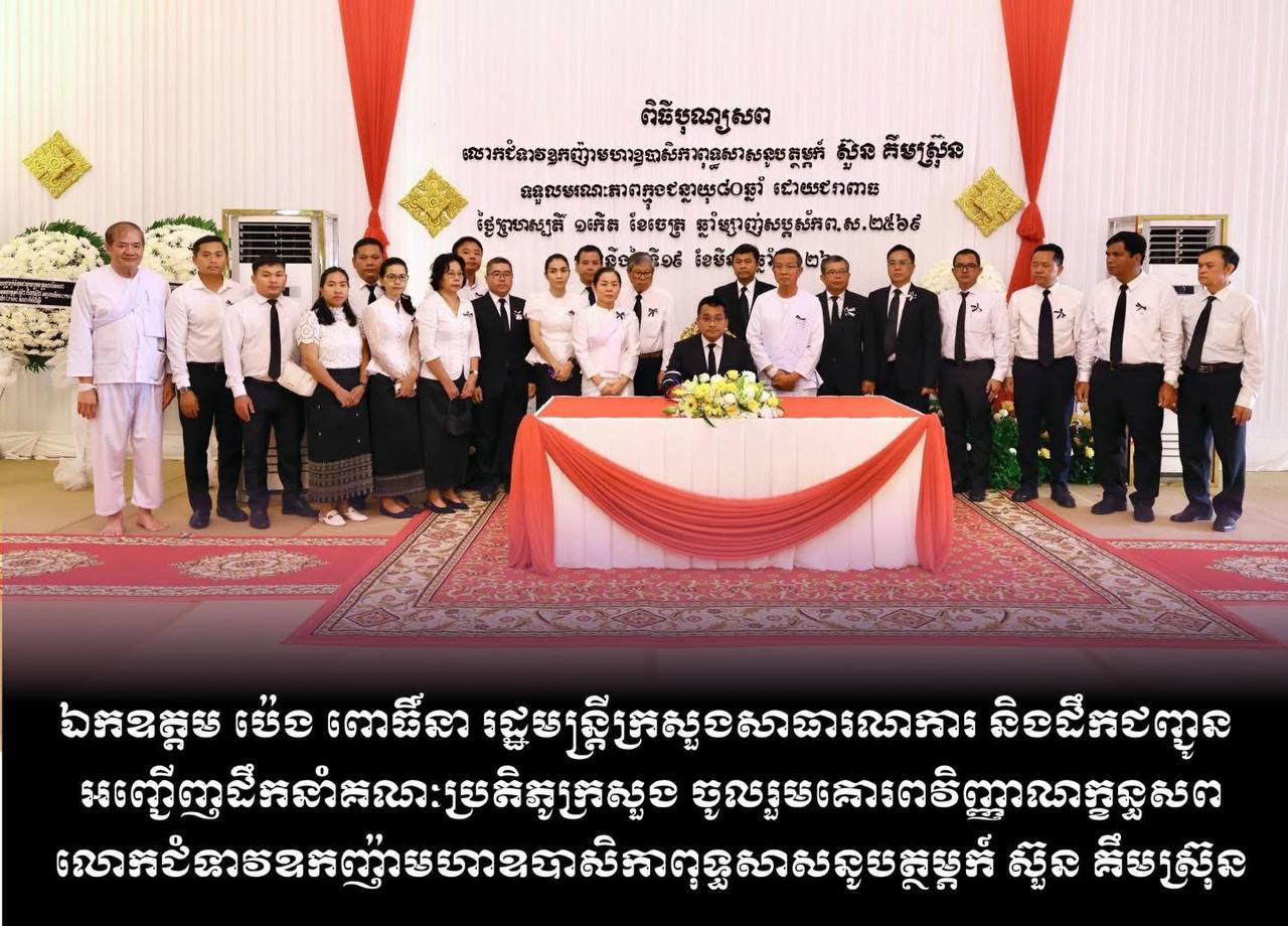 (ភ្នំពេញ៖) នារសៀលថ្ងៃសៅរ៍ ទី២១ ខែមីនា ឆ្នាំ២០២៦ លោក ប៉េង ពោធិ៍នា រដ្ឋមន្រ្តីក្រសួងសាធារណការ និងដឹកជញ្ជូន បានអញ្ជើញដឹកនាំគណៈប្រតិភូក្រសួង ចូលរួមគោរពវិញ្ញាណក្ខន្ធសព លោកជំទាវឧកញ៉ា មហាឧបាសិកាពុទ្ធសាសនូបត្ថម្ភក៍ ស៊ួន គឹមស្រ៊ុន ដែលបានទទួលមរណភាពកាលពីថៃ្ងព្រហស្បតិ៍ ១កើត ខែចេត្រ ឆ្នាំម្សាញ់ សប្តស័ក ពុទ្ធសករាជ ២៥៦៩ ត្រូវនឹងថ្ងៃទី១៩ ខែមីនា ឆ្នាំ២០២៦ ម៉ោង២:២១រសៀល ដោយជរាពាធ។