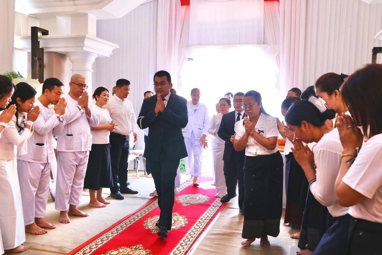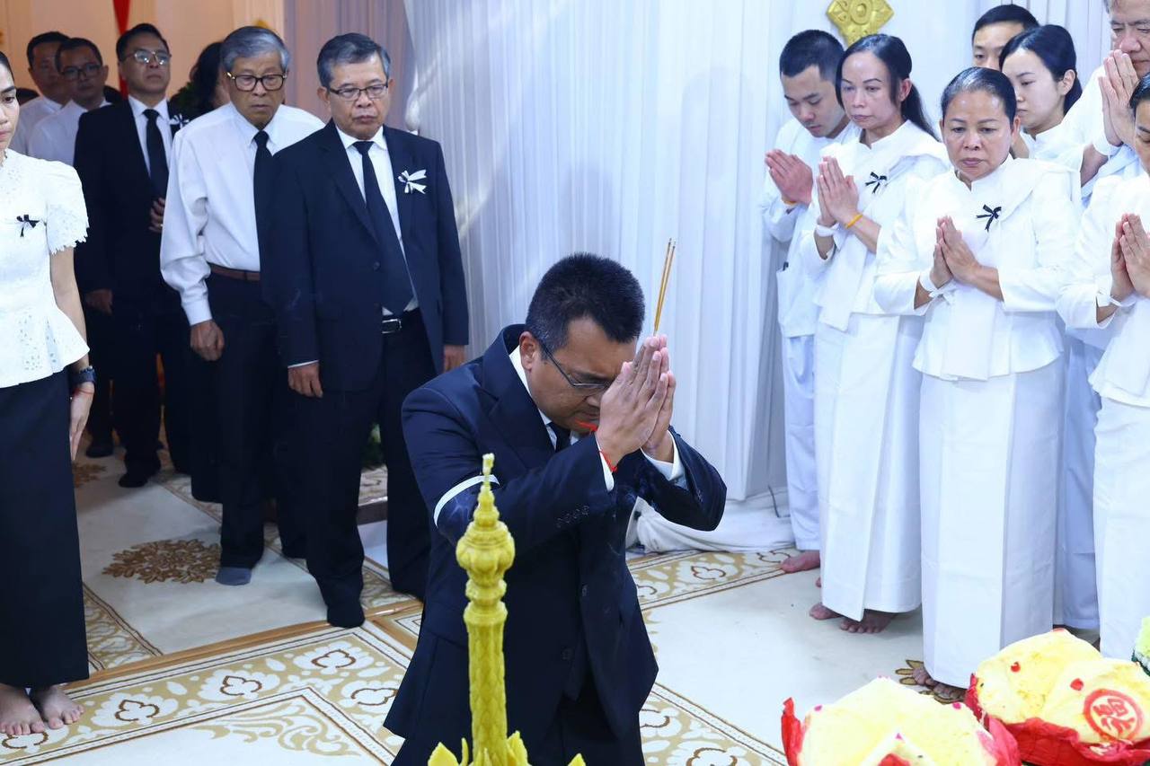 ក្នុងបរិយាកាសដ៏សែនក្រៀមក្រំនេះ លោករដ្ឋមន្រ្តី និងគណៈប្រតិភូ បានចូលរួមរំលែកទុក្ខដោយសេចក្ដីសង្វេគជាទីបំផុតជាមួយក្រុមគ្រួសារនៃសព ចំពោះការបាត់បង់អ្នកជាទីគោរពស្រឡាញ់បំផុត។ សូមឧទ្ទិសបួងសួងដល់ដួងវិញ្ញាណក្ខន្ធរបស់ លោកជំទាវឧកញ៉ាមហាឧបាសិកាពុទ្ធសាសនូបត្ថម្ភក៍ ស៊ួន គឹមស្រ៊ុន សូមឱ្យបានសោយសុខក្នុងសុគតិភពកុំបីឃ្លៀងឃ្លាតឡើយ៕
