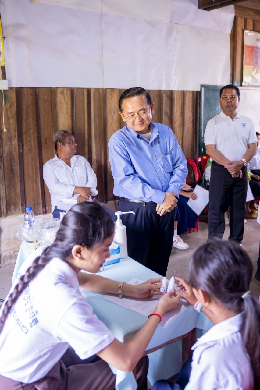(បាត់ដំបង)៖ សម្តេចមហាបវរធិបតី ហ៊ុន ម៉ាណែត និងលោកជំទាវបណ្ឌិត ពេជ ចន្ទមុន្នី ហ៊ុនម៉ាណែត បានចាត់ឲ្យក្រុមគ្រូពេទ្យរបស់សមាគមគ្រូពេទ្យស្ម័គ្រចិត្តយុវជនសម្តេចតេជោ (TYDA) បានចុះពិនិត្យព្យាបាលជំងឺទូទៅ ជំងឺភ្នែក សុខភាពមាត់ធ្មេញ និងអប់រំសុខភាពជូនសិស្សានុសិស្ស លោកគ្រូអ្នកគ្រូ និងអាណាព្យាបាល សរុបចំនួន ៣៣៩០នាក់នៅក្នុងខេត្តបាត់ដំបង។