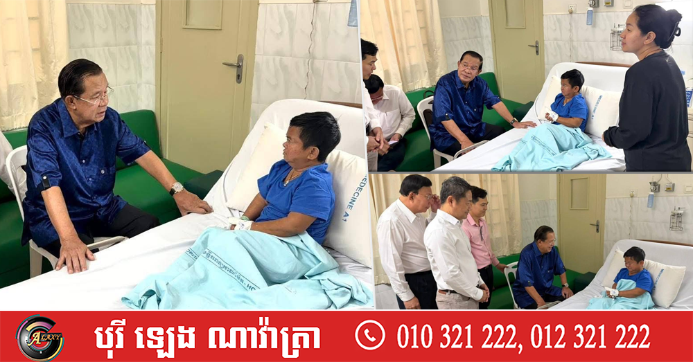 (ភ្នំពេញ)៖ នៅព្រឹកថ្ងៃអាទិត្យ ទី២២ ខែមីនា ឆ្នាំ២០២៦នេះ សម្តេចតេជោ ហ៊ុន សែន ប្រមុខរដ្ឋស្តីទី បានអញ្ជើញសួរសុខទុក្ខនាយក្រិនដែលកំពុងសម្រាកព្យាបាលរលាកស្រោមខួរនៅមន្ទីរពេទ្យកាលម៉ែត។