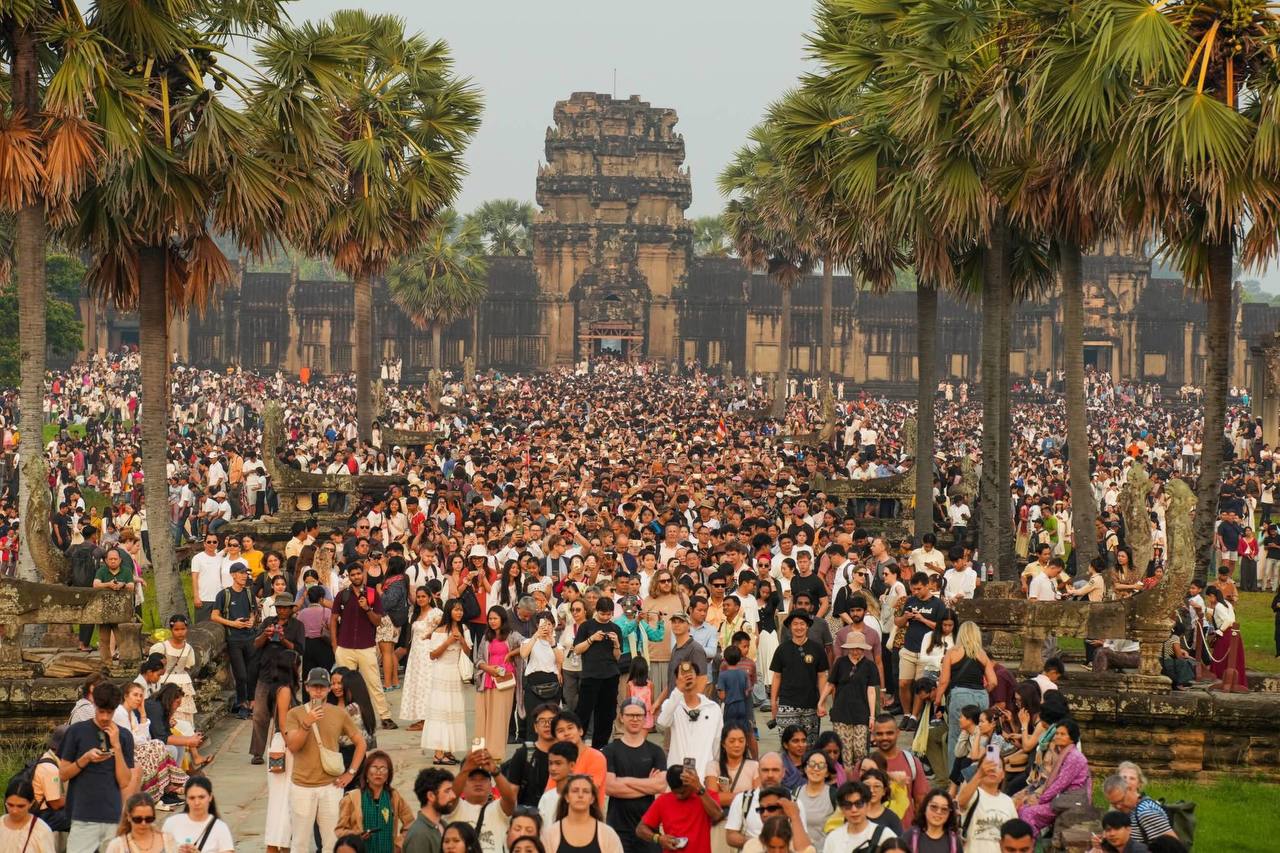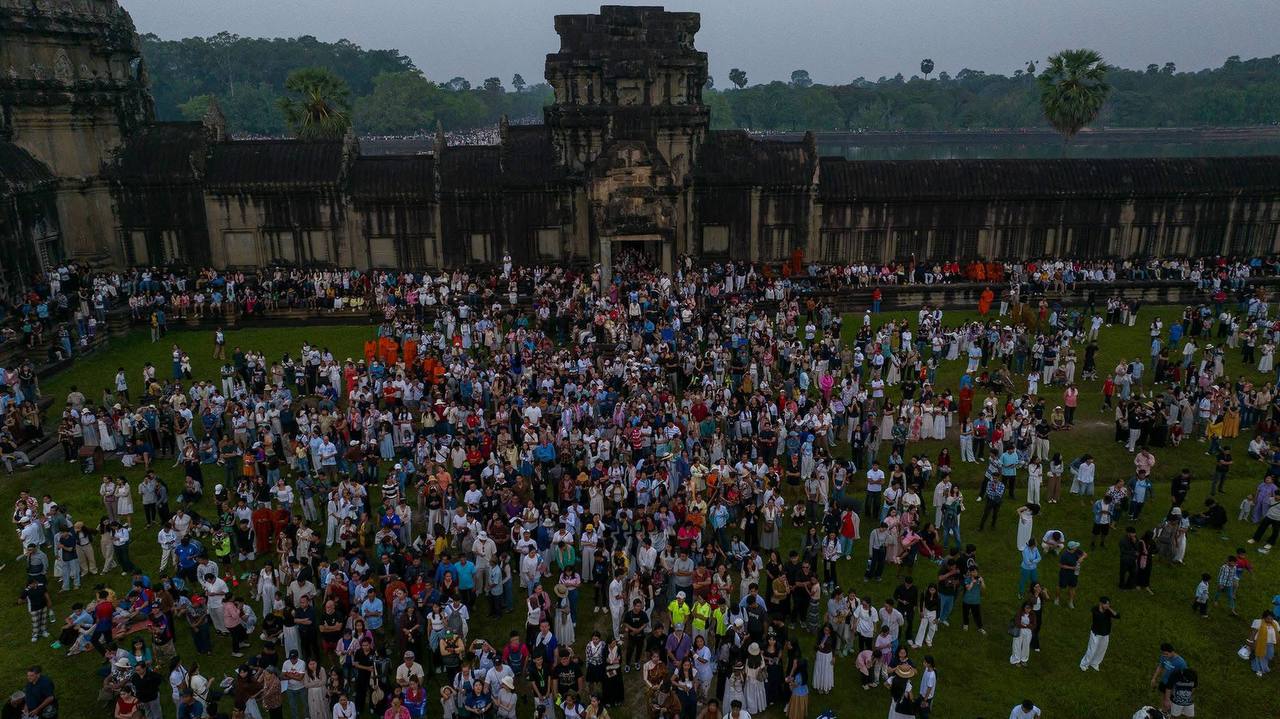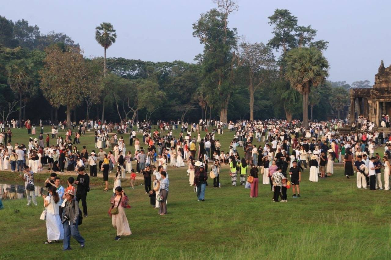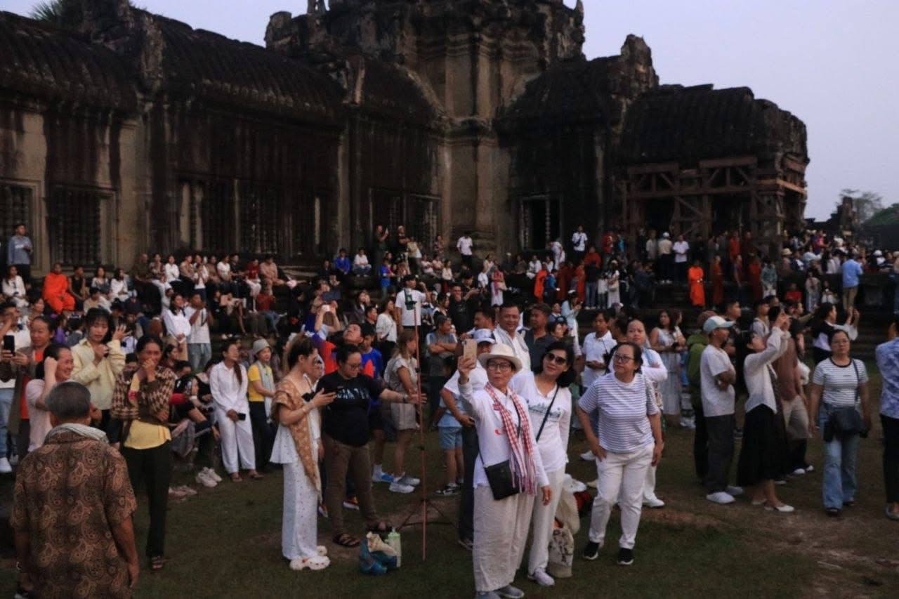 (សៀមរាប)៖ ភ្ញៀវទេសចរជាតិ និងអន្តរជាតិជាង ៣ម៉ឺននាក់ នាព្រឹកព្រលឹមថ្ងៃទី២២ ខែមីនា ឆ្នាំ២០២៦ បានធ្វើដំណើរមកពីគ្រប់ទិសទី ដើម្បីទស្សនាព្រឹត្តិការណ៍សមរាត្រី (Equinox) ដែលជាទិដ្ឋភាពព្រះសូរិយារះឡើងចំកំពូលប្រាង្គកណ្តាលនៃប្រាសាទអង្គរវត្តយ៉ាងស្រស់ត្រកាលបំផុត។ នេះបើយោងតាមការឲ្យដឹងរបស់អាជ្ញាធរជាតិអប្សរា។