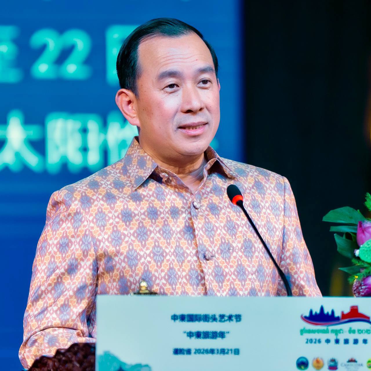 (សៀមរាហ)៖ លោក ហួត ហាក់ រដ្ឋមន្ត្រីក្រសួងទេសចរណ៍ និងភរិយា ថ្ងៃទី២១ ខែមីនា ឆ្នាំ២០២៦ បានអញ្ជើញជាអធិបតីក្នុងព្រឹត្តិការណ៍ «មហោស្រពសិល្បៈតាមដងផ្លូវអន្តរជាតិ កម្ពុជា-ចិន» ដោយមានការអញ្ជើញចូលរួមពីលោក ង៉ូវ សេងកាក់ តំណាងអភិបាលខេត្តសៀមរាប រដ្ឋលេខាធិការ និងអនុរដ្ឋលេខាធិការតំណាងក្រសួង និងស្ថាប័ននានា មន្ត្រីរាជការសាលាខេត្តសៀមរាប សហភាពសហព័ន្ធយុវជនកម្ពុជា សិស្ស-និស្សិត និងភ្ញៀវទេសចរជាតិ និងអន្តរជាតិប្រមាណជាង៣,០០០នាក់ ដែលបានរៀបចំឡើងយ៉ាងអធិកអធមនៅតំបន់ថ្មើរជើងផាប់ស្ទ្រីត (Pub Street) ខេត្តសៀមរាប។