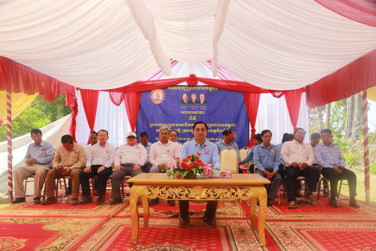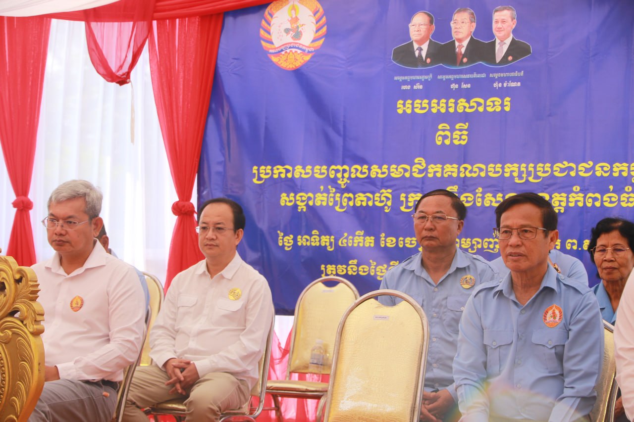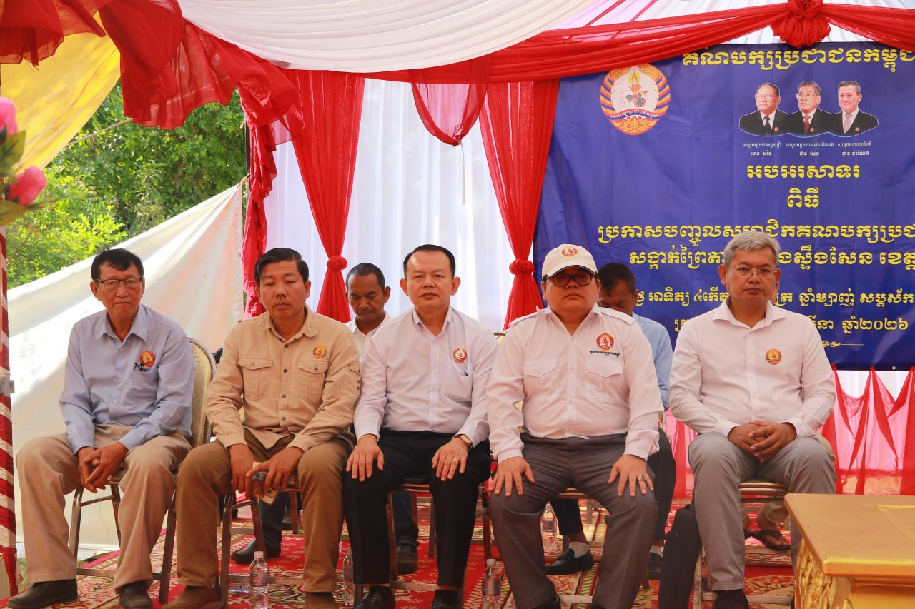 (កំពង់ធំ)៖ នៅព្រឹកថ្ងៃទី២២ ខែមីនា ឆ្នាំ២០២៦នេះ លោកបណ្ឌិត ស៊ា ម៉ៅ សមាជិក គណៈកម្មាធិការកណ្ដាលគណបក្សប្រជាជនកម្ពុជា អនុប្រធានក្រុមការងារគណបក្ស ចុះមូលដ្ឋានខេត្តកំពង់ធំ និងក្រុងស្ទឹងសែន និងជាប្រធានក្រុមការងារគណបក្សចុះមូលដ្ឋានសង្កាត់ព្រៃតាហ៊ូ និងសង្កាត់អាចារ្យលាក់នៃក្រុងស្ទឹងសែន បានអញ្ជើញប្រកាសបញ្ចូលសមាជិកគណបក្សប្រជាជនកម្ពុជានៅសង្កាត់ព្រៃតាហ៊ូចំនួន ៤០០នាក់។