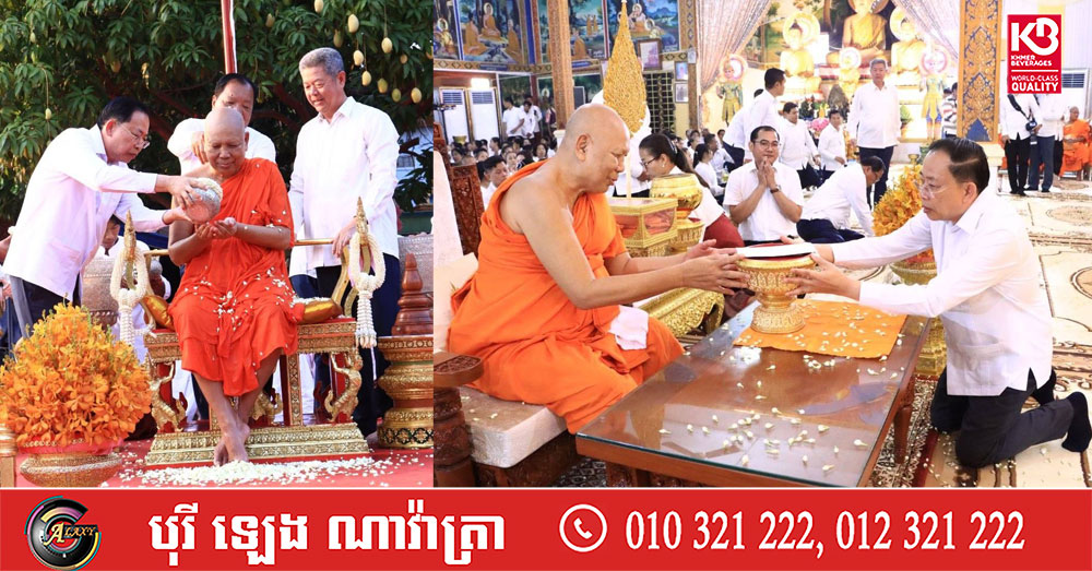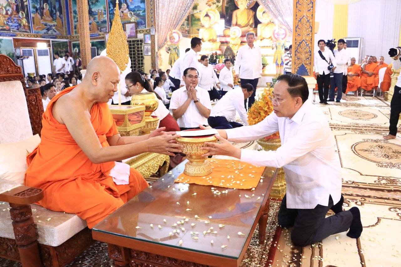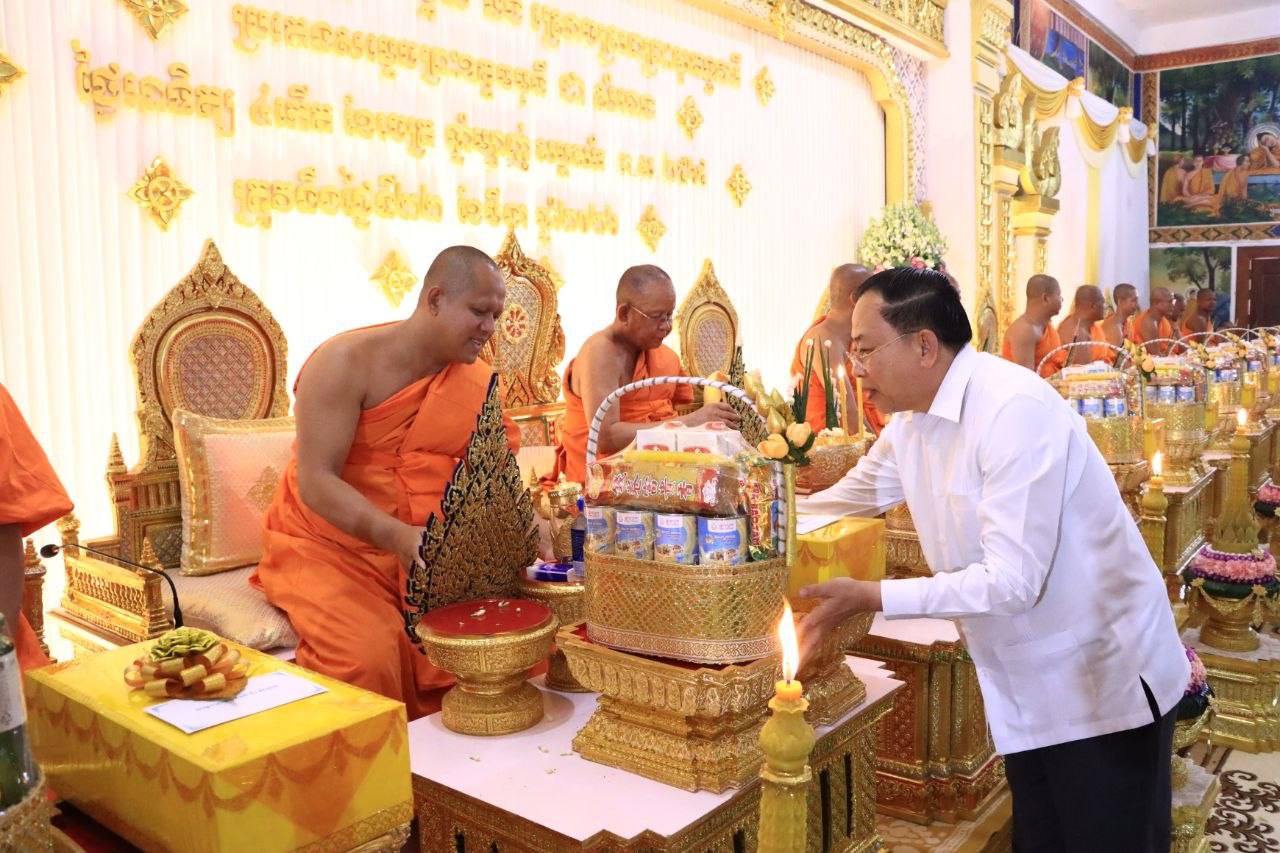 រដ្ឋមន្ត្រីក្រសួងធម្មការអញ្ជើញចូលរួមពិធីចម្រើនអាយុវឌ្ឍនមង្គល ស្រោចស្រពព្រះសុគន្ធវារី ប្រគេនសម្តេចព្រះឧត្តមមុនី ជា សំអាង ព្រះមេគណខេត្តកណ្តាល