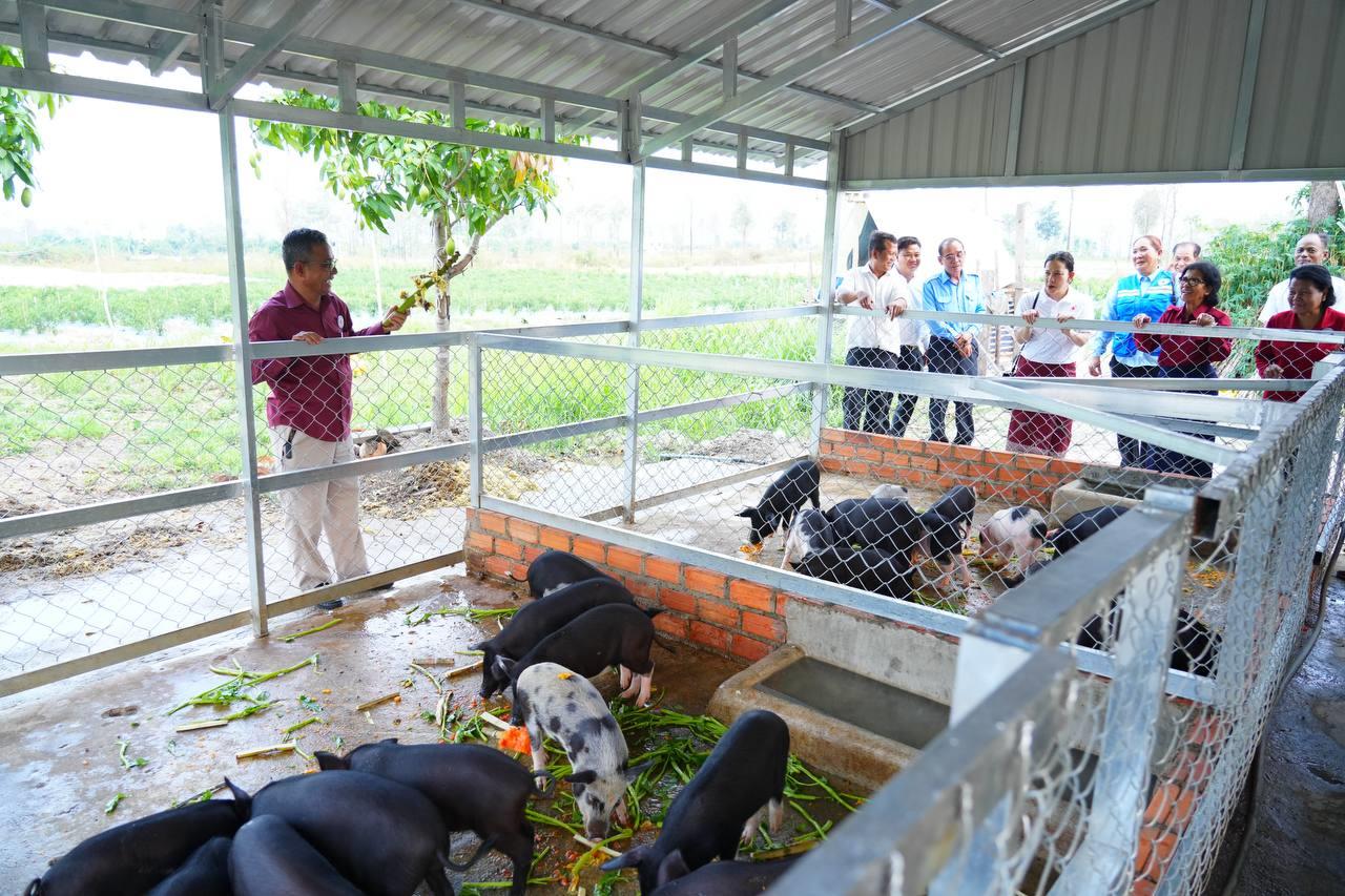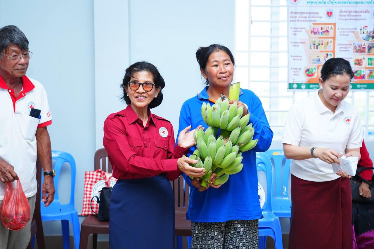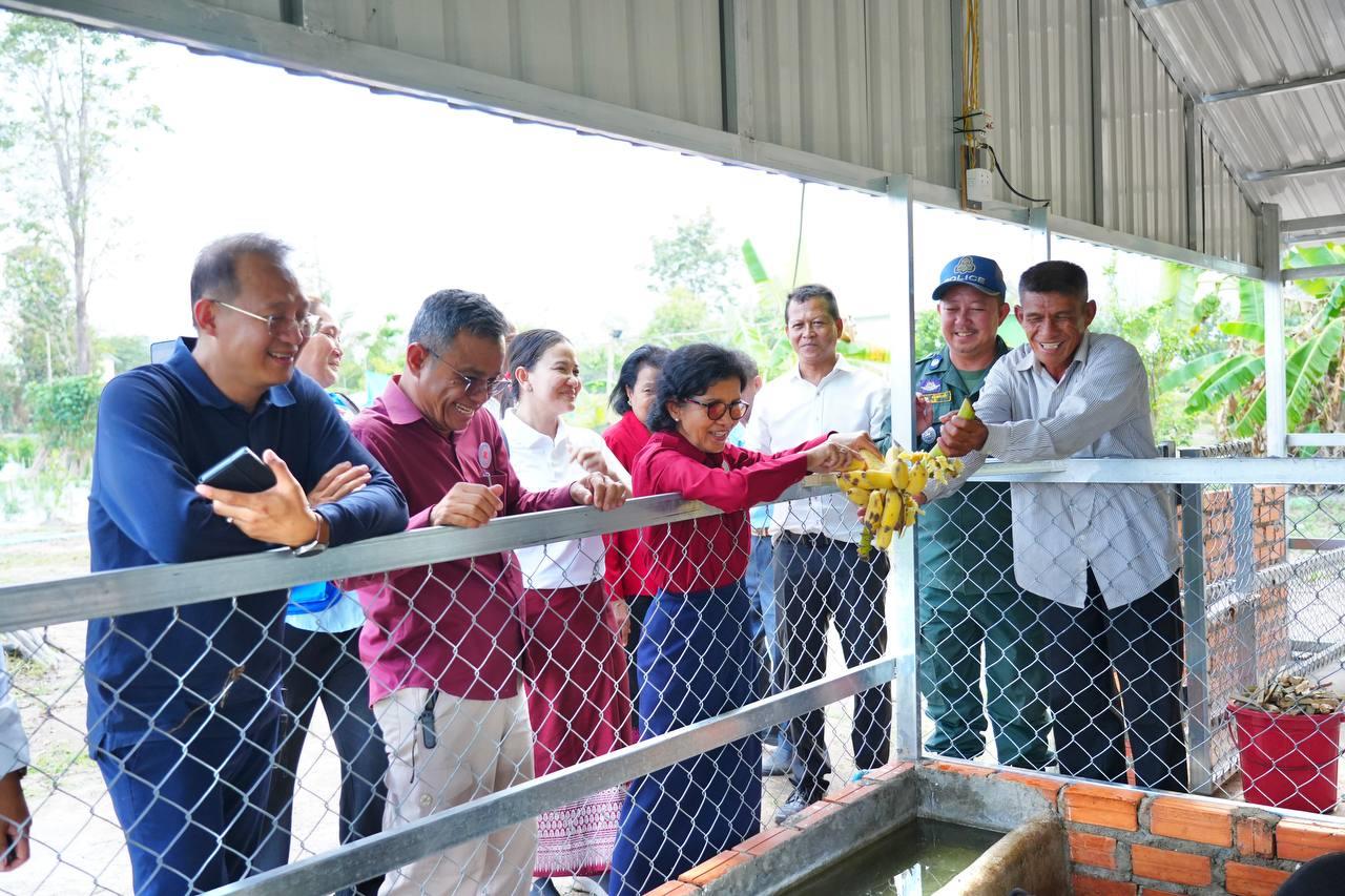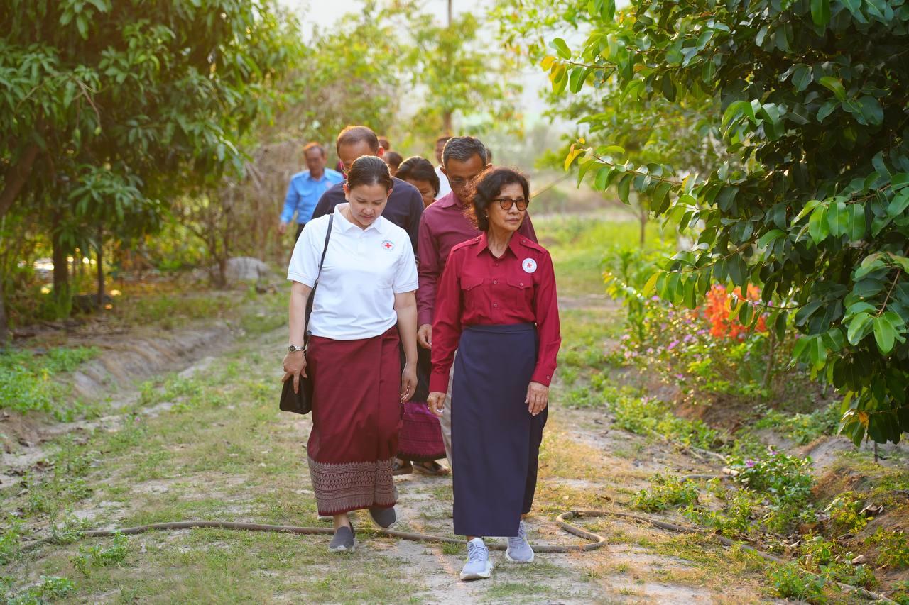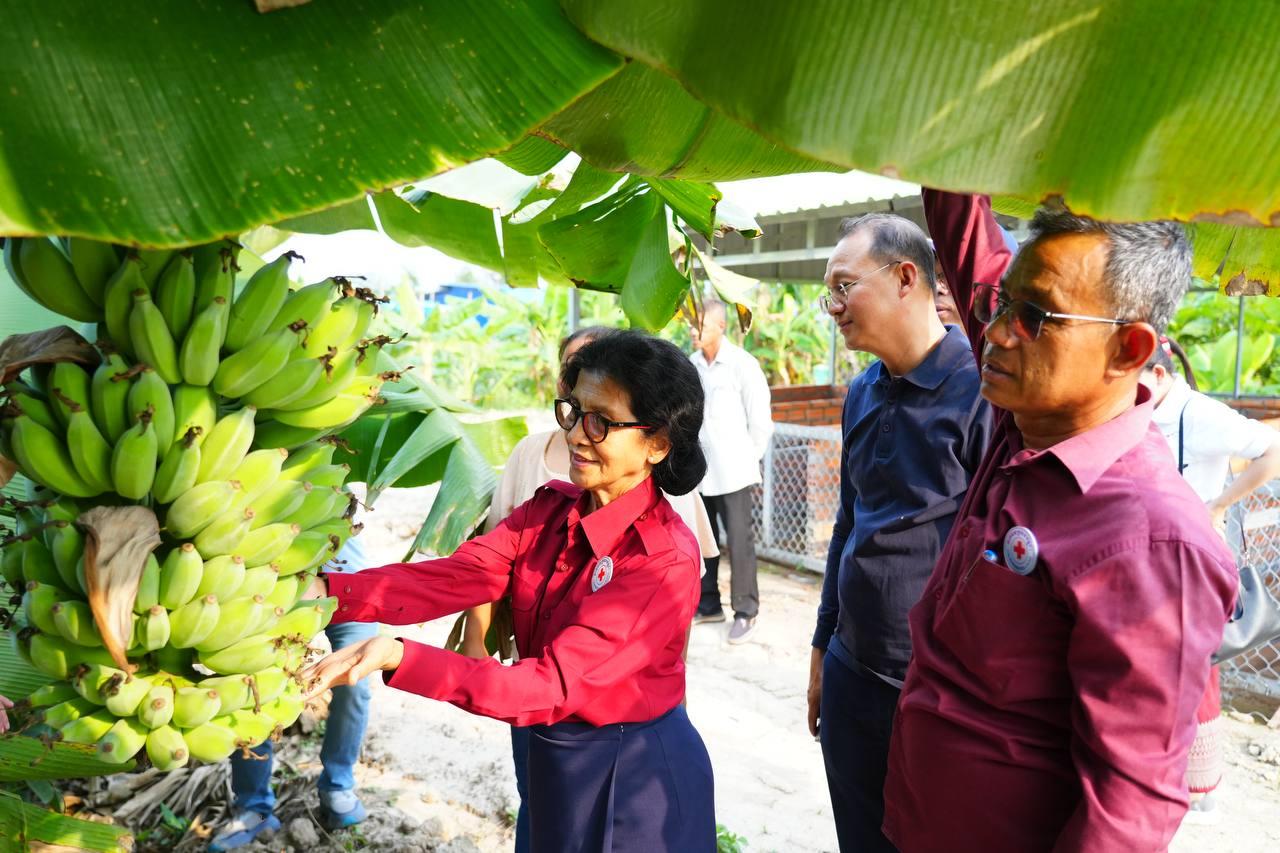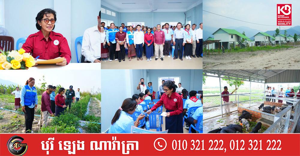 ក្នុងឱកាសនោះ លោកស្រីបានឧបត្ថម្ភ កៅអីជ័រចំនួន ៧០ ដល់ក្លឹបយុវជនកាកបាទក្រហមនៃអនុវិទ្យាល័យ និងផ្តល់អំណោយអនុស្សាវរីយ៍ដល់អ្នកចូលរួមទាំងអស់។ បន្ទាប់មក គណៈប្រតិភូបានចុះពិនិត្យផ្ទាល់ដល់ទីតាំងដាំដុះ និងចិញ្ចឹមសត្វ ដើម្បីស្វែងយល់ពីស្ថានភាពរស់នៅជាក់ស្តែង និងលើកទឹកចិត្តដល់គ្រួសារអតីតយោធិនក្នុងតំបន់តំណាក់ទ្រយឹង៕