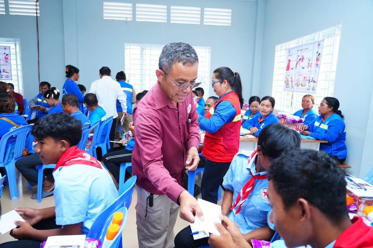 (ពោធិ៍សាត់)៖ លោកស្រី ពុំ ចន្ទីនី អគ្គលេខាធិការកាកបាទក្រហមកម្ពុជា រួមដំណើរដោយ លោក ហៀម ឃួន អនុប្រធានអចិន្ត្រៃយ៍ គណៈកម្មាធិការសាខាកាកបាទក្រហមកម្ពុជា ខេត្តពោធិ៍សាត់ និងក្រុមប្រតិបត្តិសាខា អនុសាខាស្រុកភ្នំក្រវាញ បានចុះជួបសំណេះសំណាលផ្ទាល់ ជាមួយយុវជន និងអ្នកស្ម័គ្រចិត្ត ចំនួន៦០នាក់ នៅអនុវិទ្យាល័យប៊ុនរ៉ានីសែនជ័យ ដំណាក់ទ្រយឹង ដើម្បីពង្រឹងសមត្ថភាពការងារមនុស្សធម៌ និងលើកកម្ពស់ជីវភាពគ្រួសារអតីតយោធិន តាមរយៈកសិកម្មបែបថ្មី។