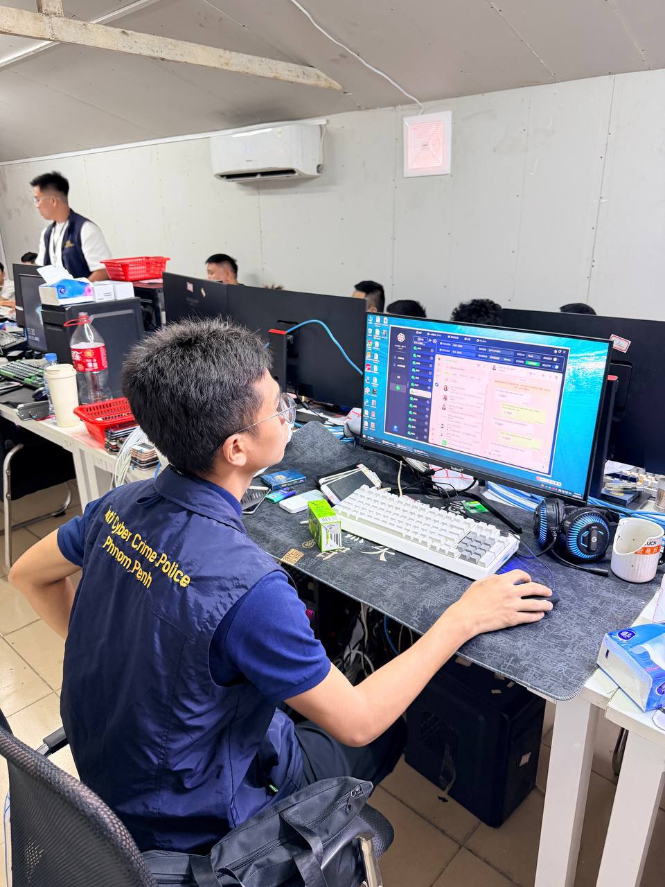 (ភ្នំពេញ)៖ កម្លាំងជំនាញនៃស្នងការដ្ឋាននគរបាលរាជធានីភ្នំពេញ បានបើកប្រតិបត្តិការបង្ក្រាបសំបុកឆបោកតាមប្រព័ន្ធបច្ចេកវិទ្យា Online Scams នៅសណ្ឋាគារជីនបៀនមេឌូ ដែលមានទីតាំងនៅតាមបណ្ដោយផ្លូវ១០១៩ ភូមិទ្រុងមាន់ សង្កាត់អូរបែកក្អម ខណ្ឌសែនសុខ។