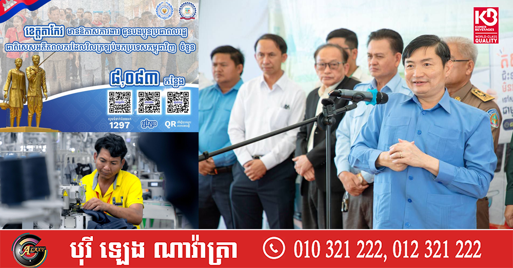 ក្រសួងការងារ៖ ខេត្តតាកែវមានឱកាសការងារជាង ៨ពាន់កន្លែង ជូនបងប្អូនប្រជាពលរដ្ឋ ជាពិសេសអតីតពលករដែលវិលត្រឡប់មកកម្ពុជាវិញ