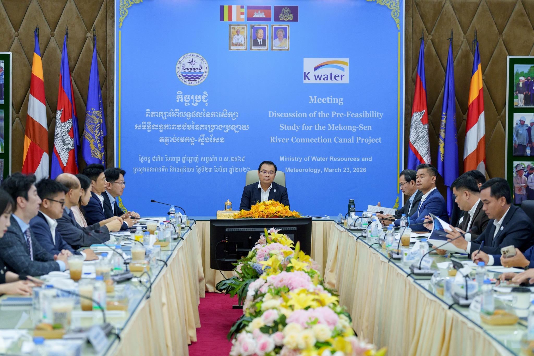 (ភ្នំពេញ)៖ នាព្រឹកថ្ងៃចន្ទ ទី២៣ ខែមីនា ឆ្នាំ២០២៦នេះ លោក ថោ ជេដ្ឋា រដ្ឋមន្ត្រីក្រសួងធនធានទឹក និងឧតុនិយម បានអញ្ជើញជាអធិបតីភាពដ៏ខ្ពង់ខ្ពស់ដឹកនាំកិច្ចប្រជុំដើម្បីពិនិត្យ និងពិភាក្សាអំពីលទ្ធផលនៃការសិក្សាសមិទ្ធិលទ្ធភាពបឋមនៃគម្រោងប្រឡាយតភ្ជាប់មេគង្គ-ស្ទឹងសែន ជាមួយប្រតិភូតំណាងសាជីវកម្មធនធានទឹកកូរ៉េ (K-water) នៅសាលប្រជុំនៃទីស្ដីការក្រសួងធនធានទឹក និងឧតុនិយម។