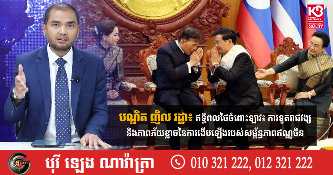 (ភ្នំពេញ)៖ លោកបណ្ឌិត ញិល រដ្ឋា អ្នកជំនាញវិទ្យាសាស្រ្តនយោបាយ និងសេដ្ឋកិច្ច បានបង្ហាញពី ឥទ្ធិពលថៃចំពោះឡាវ ជុំវិញការទូតរាជវង្ស និងភាពភ័យខ្លាចនៃការងើបឡើងរបស់សម្ព័ន្ធភាពឥណ្ឌូចិន ដែលមានខ្លឹមសារដូចតទៅ៖