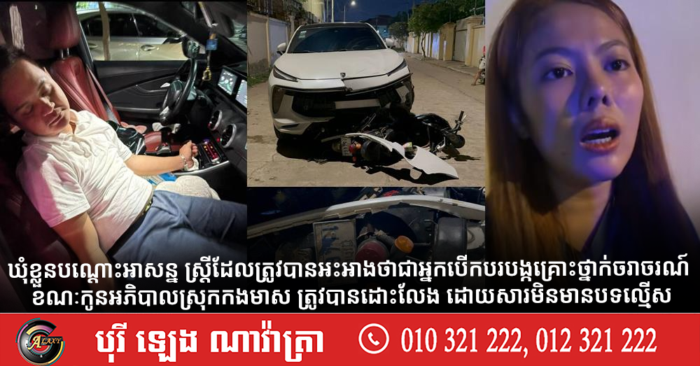 ឃុំខ្លួនបណ្តោះអាសន្ន ស្ត្រីដែលត្រូវបានអះអាងថាជាអ្នកបើកបរបង្កគ្រោះថ្នាក់ចរាចរណ៍ ខណៈកូនអភិបាលស្រុកកងមាស ត្រូវបានដោះលែង ដោយសារមិនមានបទល្មើស