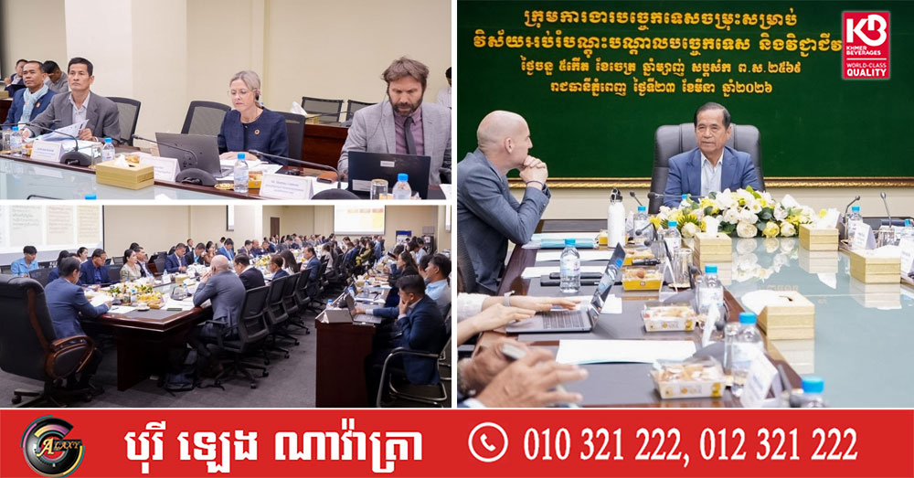 (ភ្នំពេញ)៖ លោក ប៉ុក ប៉ាន់ រដ្ឋលេខាធិការក្រសួងការងារ និងបណ្តុះបណ្តាលវិជ្ជាជីវៈ និងជាអនុប្រធានក្រុមការងារបច្ចេកទេសចម្រុះ សម្រាប់វិស័យអប់រំបណ្តុះបណ្តាលបច្ចេកទេស និងវិជ្ជាជីវៈ (TWG on TVET) បានដឹកនាំកិច្ចប្រជុំក្រុមការងារ នាថ្ងៃទី២៣ ខែមីនា ឆ្នាំ២០២៦ ដើម្បីពិនិត្យពិភាក្សាលើសេចក្តីព្រាងរបាយការណ៍វាយតម្លៃការអនុវត្តគោលនយោបាយជាតិស្តីពី អ.ប.វ.ឆ្នាំ២០១៧-២០២៥ និងការរៀបចំសន្និធិជំនាញកម្ពុជា នៅទីស្តីក្រសួង ។