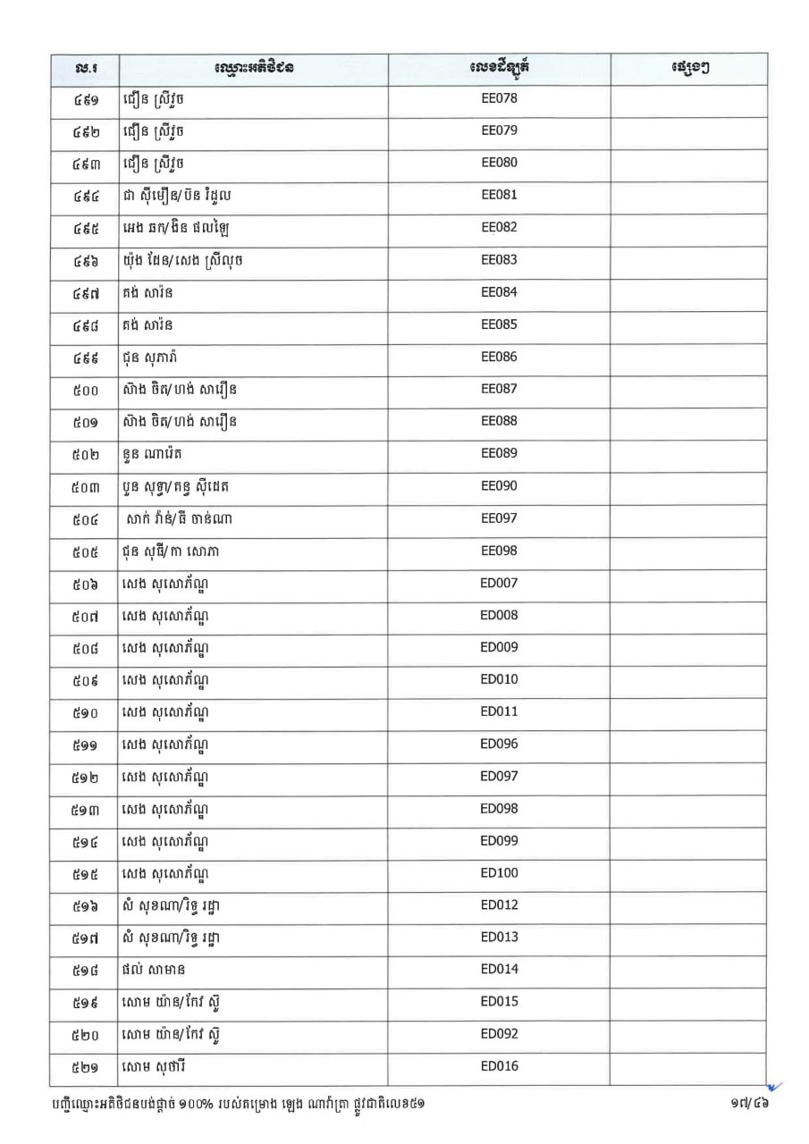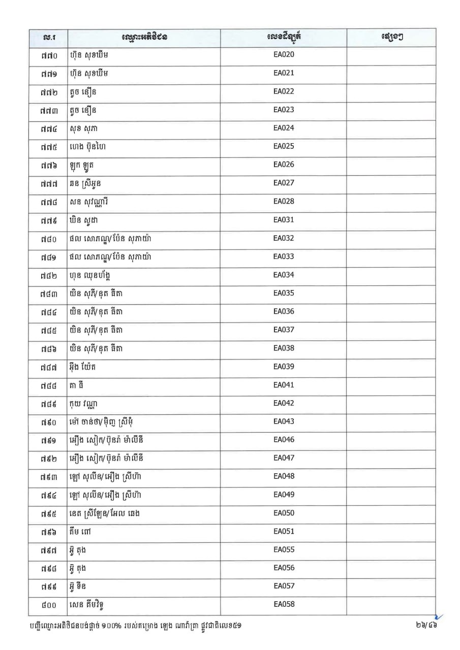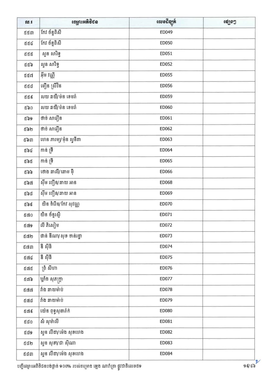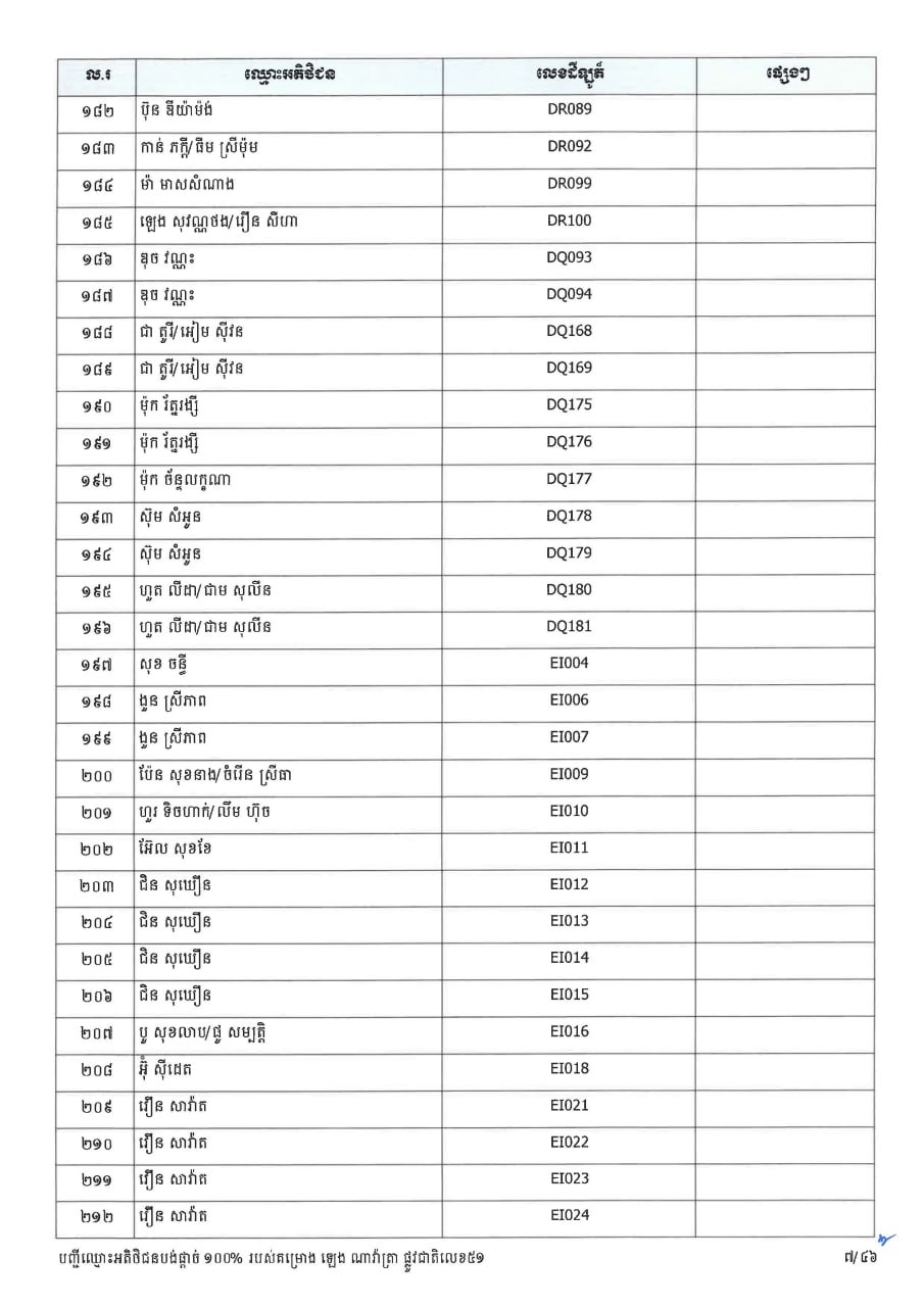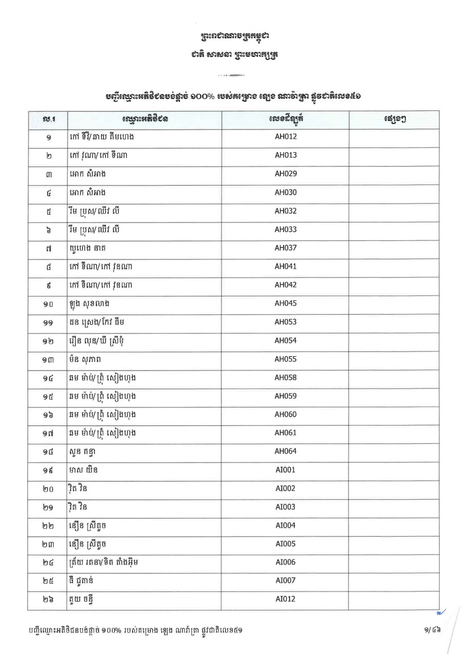 ក្រសួងដែនដី ប្រកាសបន្តទទួលពាក្យស្នើសុំផ្ទេរកម្មសិទ្ធ ជូនអតិថិជនគម្រោង ឡេង ណាវ៉ាត្រា ផ្លូវជាតិលេខ៥១ និងគម្រោង ឡេង ណាវ៉ាត្រា (Jasmine)