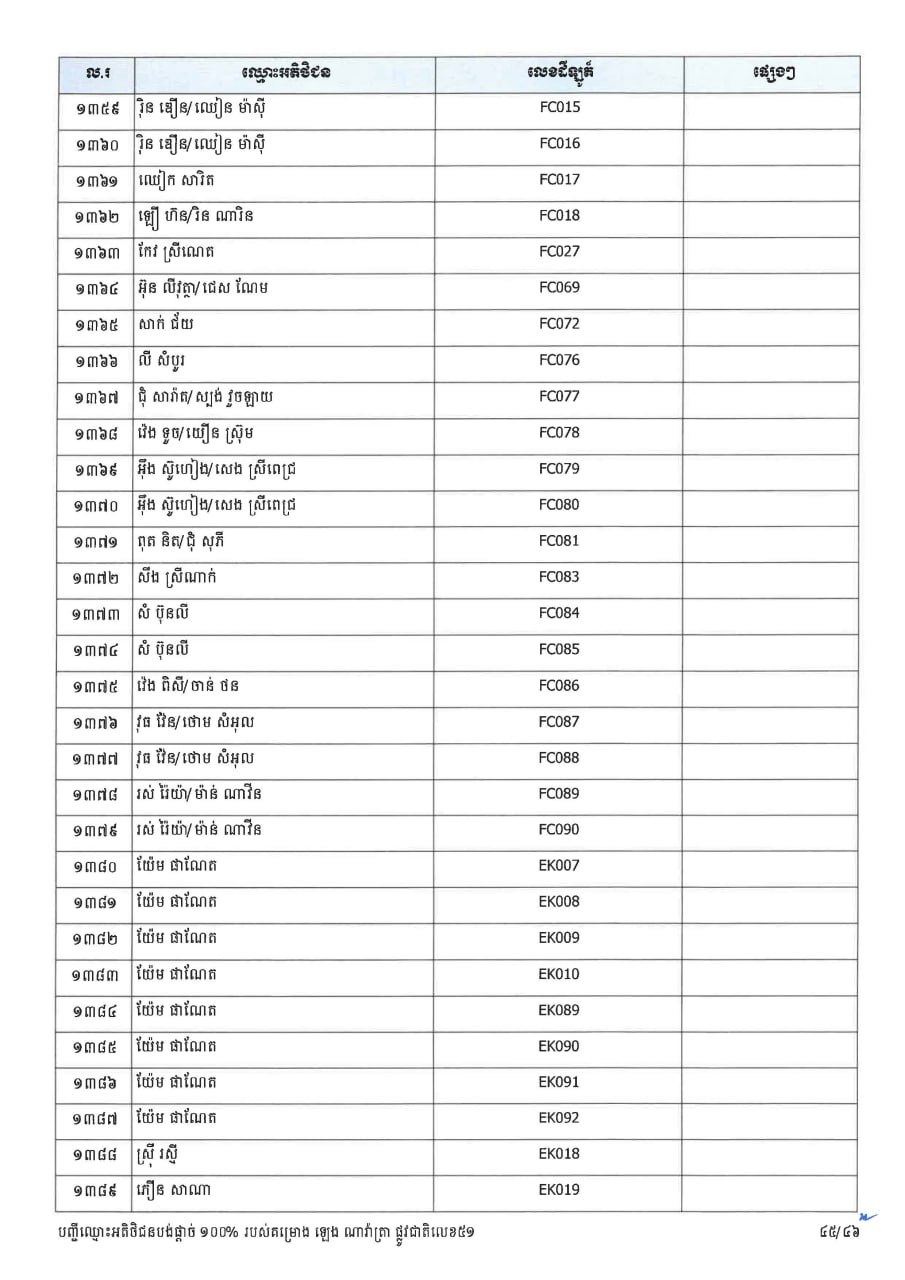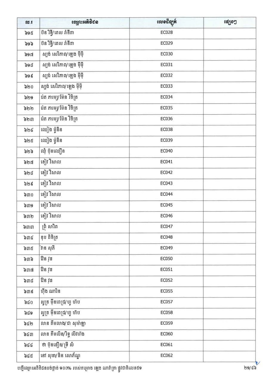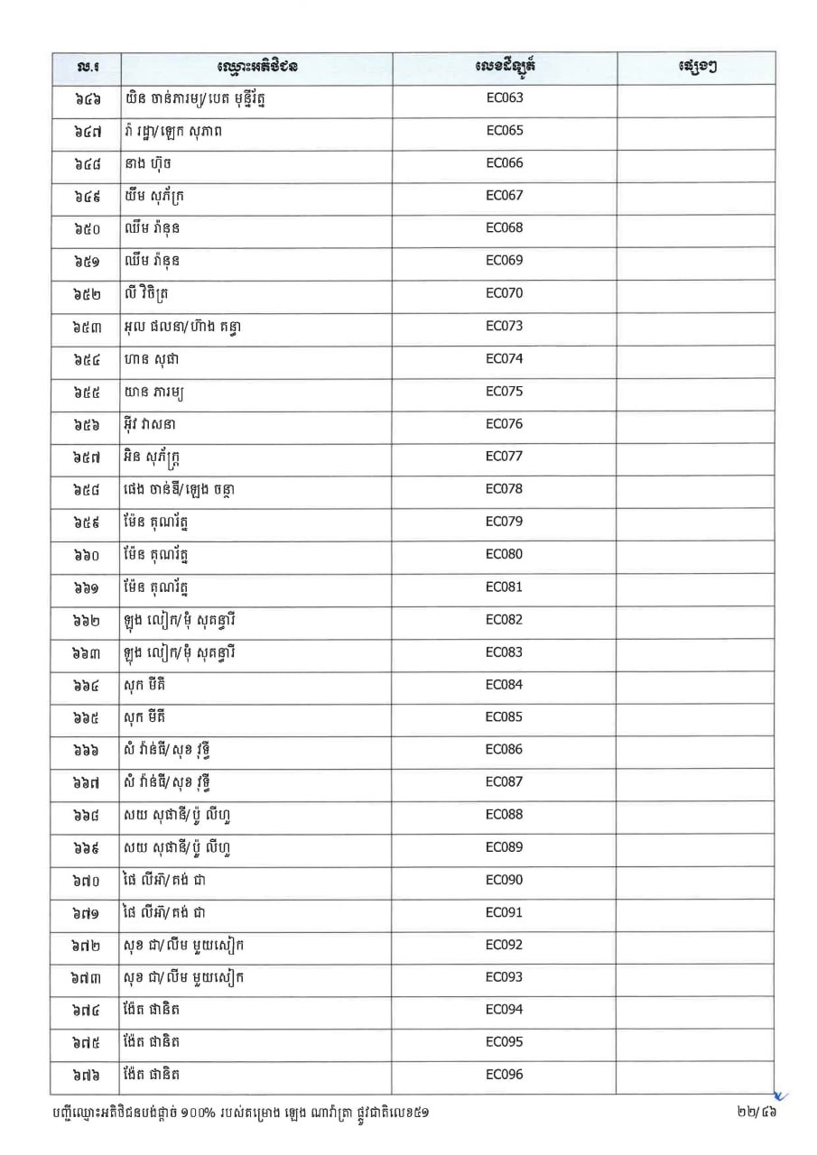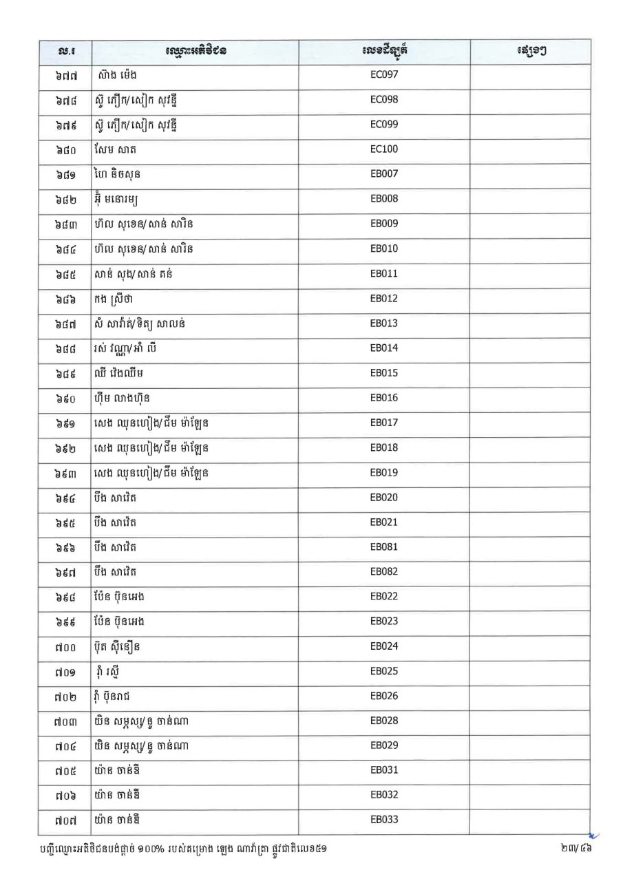 ក្រសួងដែនដី ប្រកាសបន្តទទួលពាក្យស្នើសុំផ្ទេរកម្មសិទ្ធ ជូនអតិថិជនគម្រោង ឡេង ណាវ៉ាត្រា ផ្លូវជាតិលេខ៥១ និងគម្រោង ឡេង ណាវ៉ាត្រា (Jasmine)
