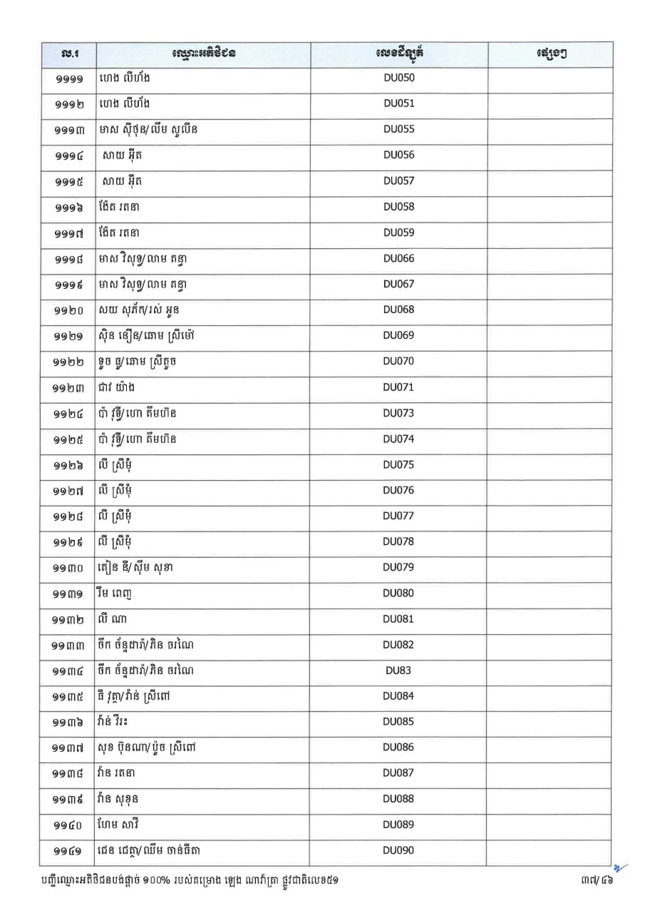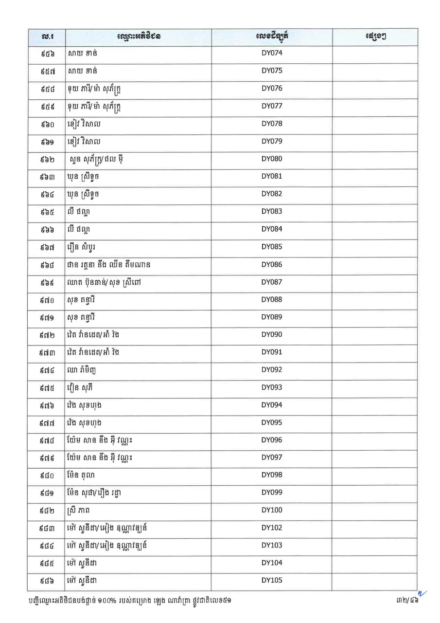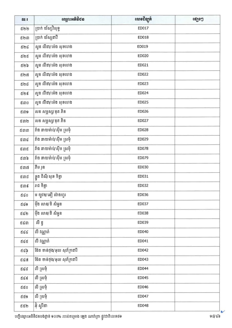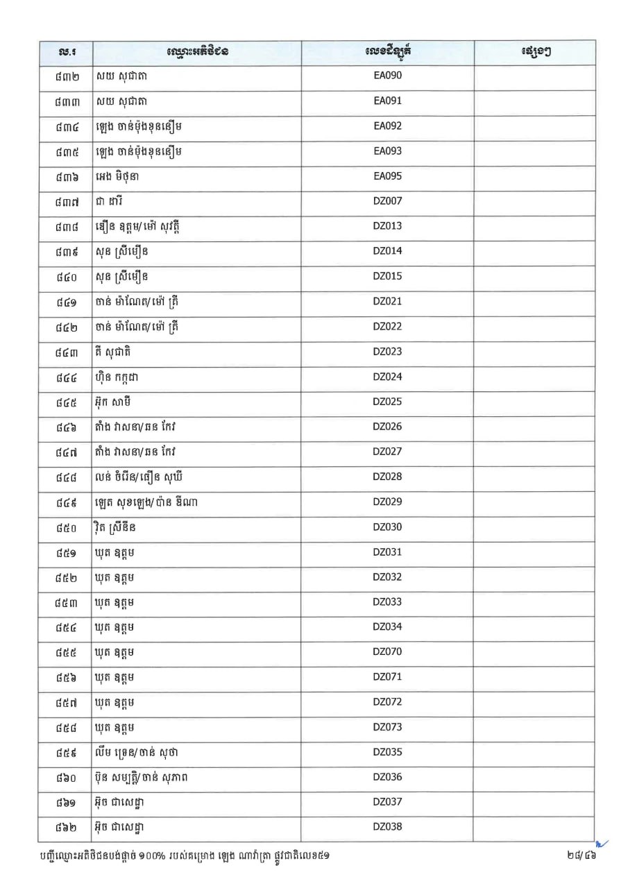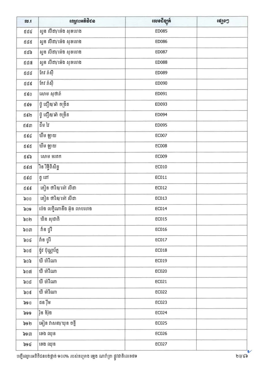 ក្រសួងដែនដី ប្រកាសបន្តទទួលពាក្យស្នើសុំផ្ទេរកម្មសិទ្ធ ជូនអតិថិជនគម្រោង ឡេង ណាវ៉ាត្រា ផ្លូវជាតិលេខ៥១ និងគម្រោង ឡេង ណាវ៉ាត្រា (Jasmine)