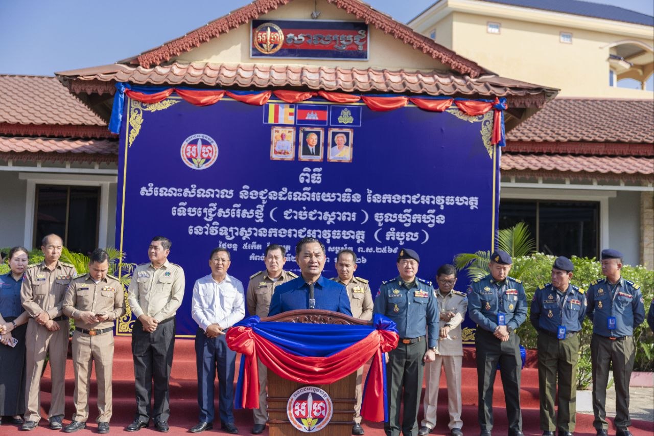 (កំពង់ស្ពឺ)៖ ដោយមានការចង្អុលបង្ហាញតម្រែតម្រង់ទិសរបស់នាយឧត្តមសេនីយ៍ សៅ សុខា អគ្គមេបញ្ជាការរងកងយោធពលខេមរភូមិន្ទ និងជាមេបញ្ជាការកងរាជអាវុធហត្ថលើផ្ទៃប្រទេស នាព្រឹកថ្ងៃចន្ទ ទី២៣ ខែមីនា ឆ្នាំ២០២៦ លោកបណ្ឌិត ជាម ចន្ទ័សោភ័ណ អភិបាលខេត្តកំពង់ស្ពឺ និងលោកឧត្តមសេនីយ៍ត្រី ម៉េង ស្រ៊ុន មេបញ្ជាការកងរាជអាវុធហត្ថខេត្ត បានជួបសំណេះសំណាល និងជូនដំណើរយោធិន នៃកងរាជអាវុធហត្ថទើបជ្រើសរើសថ្មី (ជាប់ជាស្ថាពរ) ឲ្យចូលទៅហ្វឹកហ្វឺននៅវិទ្យាស្ថានកងរាជអាវុធហត្ថ (កំបូល)។
