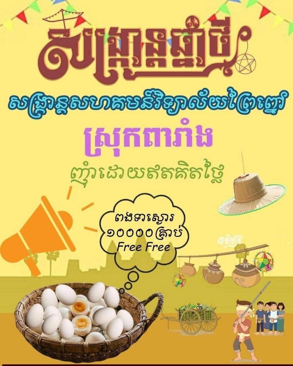 ចែកពងទាស្ងោរ១ម៉ឺនគ្រាប់ដោយឥតគិតថ្លៃ ក្នុងកម្មវិធីសង្ក្រាន្ត៣កន្លែងនៅស្រុកពារាំង ដើម្បីអបអរសាទរបុណ្យចូលឆ្នាំថ្មីប្រពៃណីជាតិខ្មែរ ឆ្នាំ២០២៦