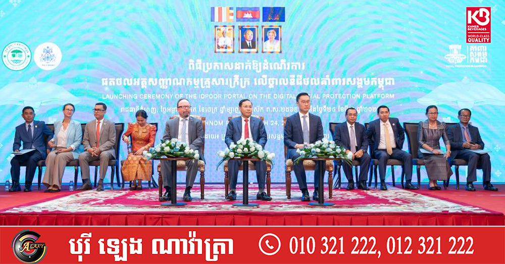 (ភ្នំពេញ)៖ លោក ប៊ិន ត្រឈៃ រដ្ឋមន្ត្រីក្រសួងផែនការ និងលោកបណ្ឌិត ចន ណារិទ្ធ រដ្ឋលេខាធិការក្រសួងសេដ្ឋកិច្ច និងហិរញ្ញវត្ថុ និងជាអគ្គលេខាធិការក្រុមប្រឹក្សាជាតិគាំពារសង្គម នៅព្រឹកថ្ងៃទី២៤ ខែមីនា ឆ្នាំ២០២៦នេះ បានអញ្ជើញជាគណៈអធិបតីក្នុងពិធីប្រកាសដាក់ឱ្យដំណើរការ «ផតថលអត្តសញ្ញាណកម្មគ្រួសារក្រីក្រ លើថ្នាលឌីជីថលគាំពារសង្គមកម្ពុជា» ដើម្បីបន្តអភិវឌ្ឍ និងធ្វើទំនើបកម្មឱ្យកាន់តែមានប្រសិទ្ធភាព និងឆ្លើយតបទាន់ពេលចំពោះតម្រូវការរបស់ប្រជាពលរដ្ឋ។
