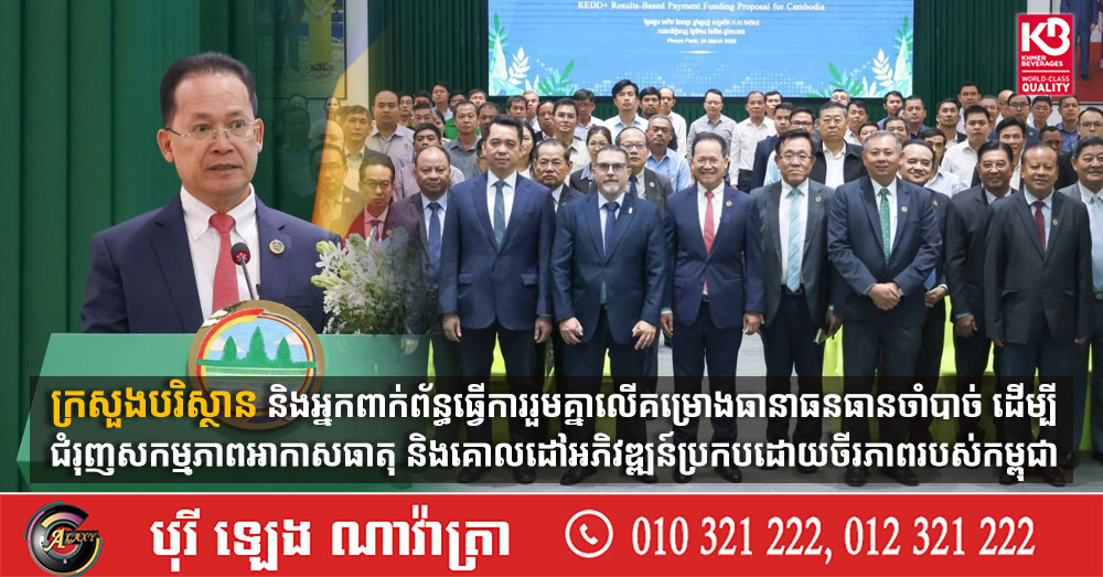 លោកបណ្ឌិត អ៊ាង សុផល្លែត រដ្ឋមន្ត្រីក្រសួងបរិស្ថាន មានប្រសាសន៍បែបនេះនៅក្នុងឱកាសអញ្ជើញជាអធិបតីបើកសិក្ខាសាលាផ្តល់សុពលភាព ស្តីពី «ការរៀបចំសំណើគម្រោងហិរញ្ញប្បទាន សម្រាប់ការទូទាត់ផ្អែកលើលទ្ធផល ពីមូលនិធិអាកាសធាតុបៃតង សម្រាប់គម្រោងការកាត់បន្ថយការបញ្ចេញឧស្ម័នផ្ទះកញ្ចក់ ពីការបាត់បង់ និងរេចរិលព្រៃឈើ (រេដបូក)នៅកម្ពុជា» នៅទីស្តីការក្រសួងបរិស្ថាន នាថ្ងៃទី២៤ ខែមីនា ឆ្នាំ២០២៦។