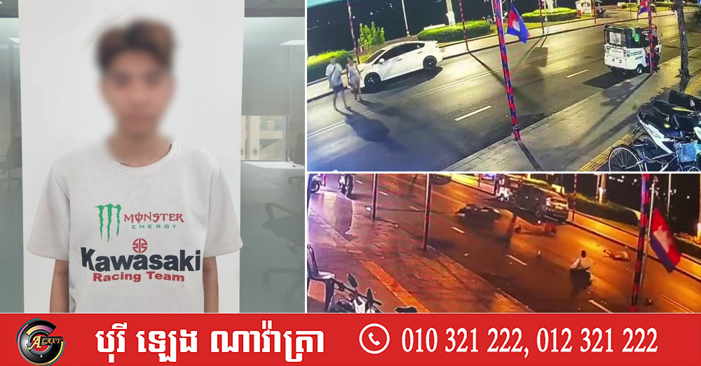 កម្លាំងនគរបាល តាមឃាត់ខ្លួនយុវជនដែលបើកម៉ូតូលឿនបុកជនបរទេស២នាក់ ដើរឆ្លងផ្លូវនៅតាមមាត់ទន្លេក្នុងខណ្ឌដូនពេញ