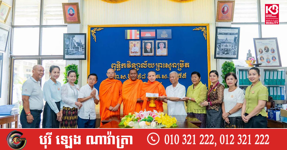 (ភ្នំពេញ)៖ លោកស្រី អគ្គមហាឧបាសិកាពុទ្ធសាសនូបត្ថម្ភក៍ ពហុវុឌ្ឍា ម៉ែន នារីវុឌ្ឍី ហូសិទ្ធី អនុប្រធានអចិន្រ្តៃយ៍ ពុទ្ធិកសមាគមកម្ពុជរដ្ឋ និងជាតំណាង ព្រះសិរីកោសល សុំ សុខា ព្រះប្រធានពុទ្ធិកសមាគមកម្ពុជរដ្ឋ នៅថ្ងៃទី២៥ ខែមីនា ឆ្នាំ២០២៦ បានដឹកនាំសមាជិក សមាជិកា អញ្ជើញចូលថ្វាយបង្គំនិងប្រគេនបច្ច័យចំនួន ២០,០០០,០០០៛ (ម្ភៃលានរៀល) ជាថវិកា មូលនិធិពុទ្ធិកសមាគមកម្ពុជរដ្ឋ ចំពោះសម្ដេចព្រះមង្គលមុនីរង្សី ហ៊ូ ឈីវនាថ ព្រះអគ្គាធិការរង នៃអគ្គាធិការដ្ឋានពុទ្ធិកសិក្សាជាតិ និងជាព្រះនាយកពុទ្ធិកវិទ្យាល័យព្រះសុរាម្រឹត ដើម្បីចាត់ចែងក្នុងកិច្ចការពិធីបុណ្យព្រហ្មទាននាពេលខាងមុខ។