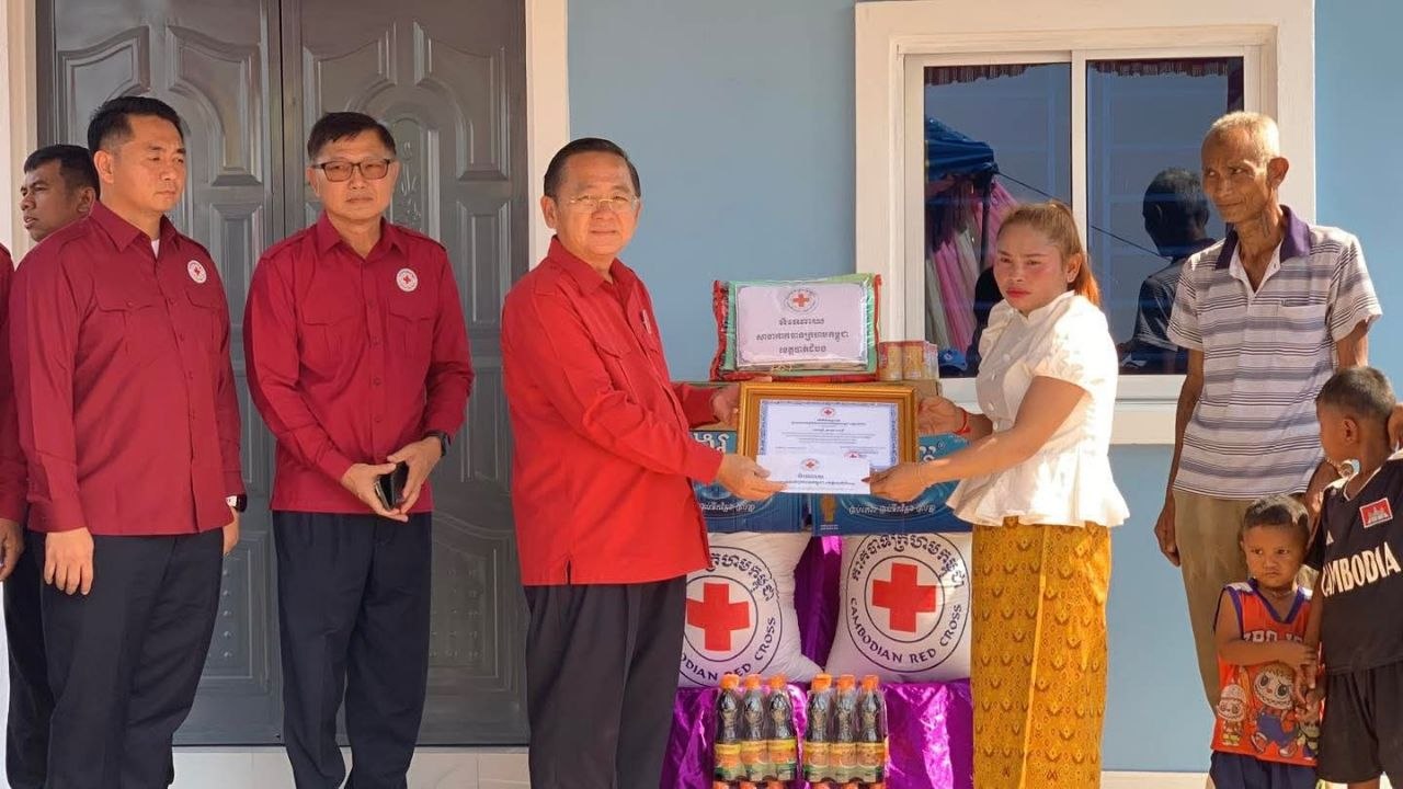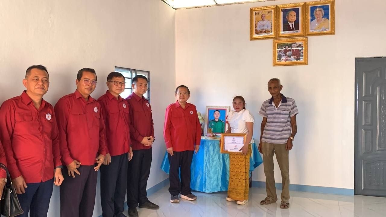 (បាត់ដំបង់)៖ លោក សុខ លូ អភិបាលខេត្តបាត់ដំបង និងជាប្រធានគណៈកម្មាធិការសាខាកាក បាទក្រហមកម្ពុជាខេត្ត អមដោយ អនុប្រធាន សមាជិក សមាជិកាគណៈកម្មាធិការសាខា អនុសាខាស្រុកបាណន់ ក្រុមកាកបាទក្រហមសង្កាត់ អ្នកស្មគ្រ័ចិត្ត នៅរសៀលថ្ងៃទី២៥ ខែមីនា ឆ្នាំ២០២៦នេះ បានប្រគល់ផ្ទះ មនុស្សធម៌១ខ្នងលេខរៀងទី២៤ ជាអំណោយរបស់ សាខាកាកបាទក្រហមកម្ពុជាខេត្ត ជូនដល់ អ្នកស្រី តាយ សារី អាយុ៣៧ឆ្នាំ ជាភរិយា និងកូនរបស់លោកពលបាលឯក ញ៉ែម ភារិន ជាវីរៈកងទ័ពដែលបានពលីជីវិតលើសមរភូមិ។