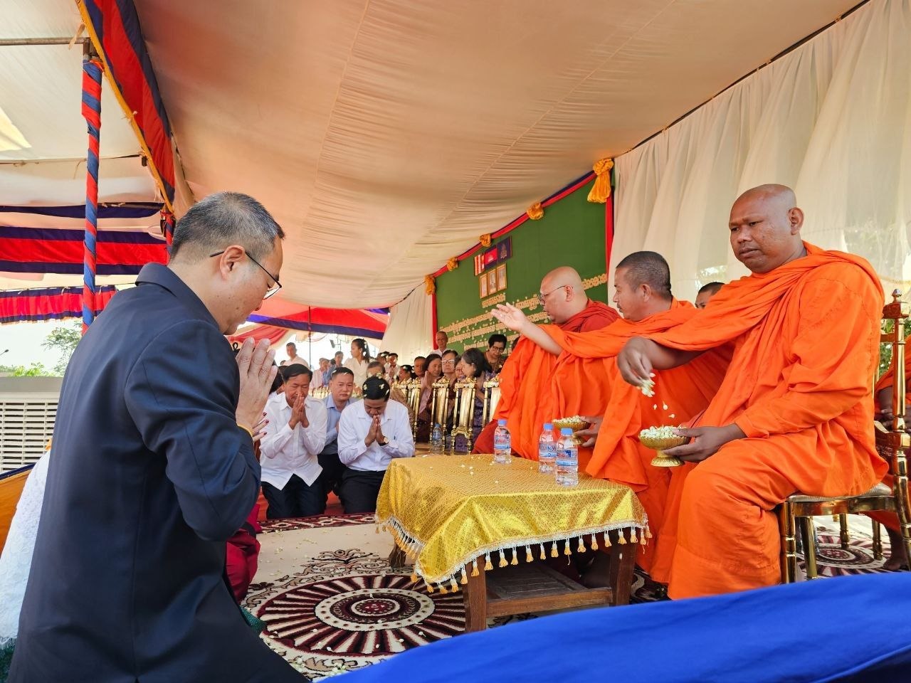 ក្នុងឱកាសនោះ លោក សួន សុម៉ាលីន សូមថ្លែងអំណរគុណជ្រាលជ្រៅ ចំពោះក្រុមគ្រួសារឧបាសិកា គីម វួចហ៊ួ លោក ឃីន សុខា និងលោកស្រី សូ មួយឡាង ព្រមទាំងកូនចៅ ដែលបានឧបត្ថម្ភការសាងសង់អគារសិក្សាថ្មីចំនួន ១ខ្នង ស្មើនឹង៣បន្ទប់នេះ ដោយមានបំពាក់គ្រឿងសង្ហារឹមសិក្សា និងសមិទ្ធផលនានាក្នុងសាលា ដែលចំណាយអស់ ៦៩ ០០០ដុល្លារ សម្រាប់កូនចៅគ្រប់ជំនាន់ក្នុងឃុំអង្គរទ្រេត ស្រុកស្វាយអន្ទរ បានសិក្សារៀនសូត្រ។