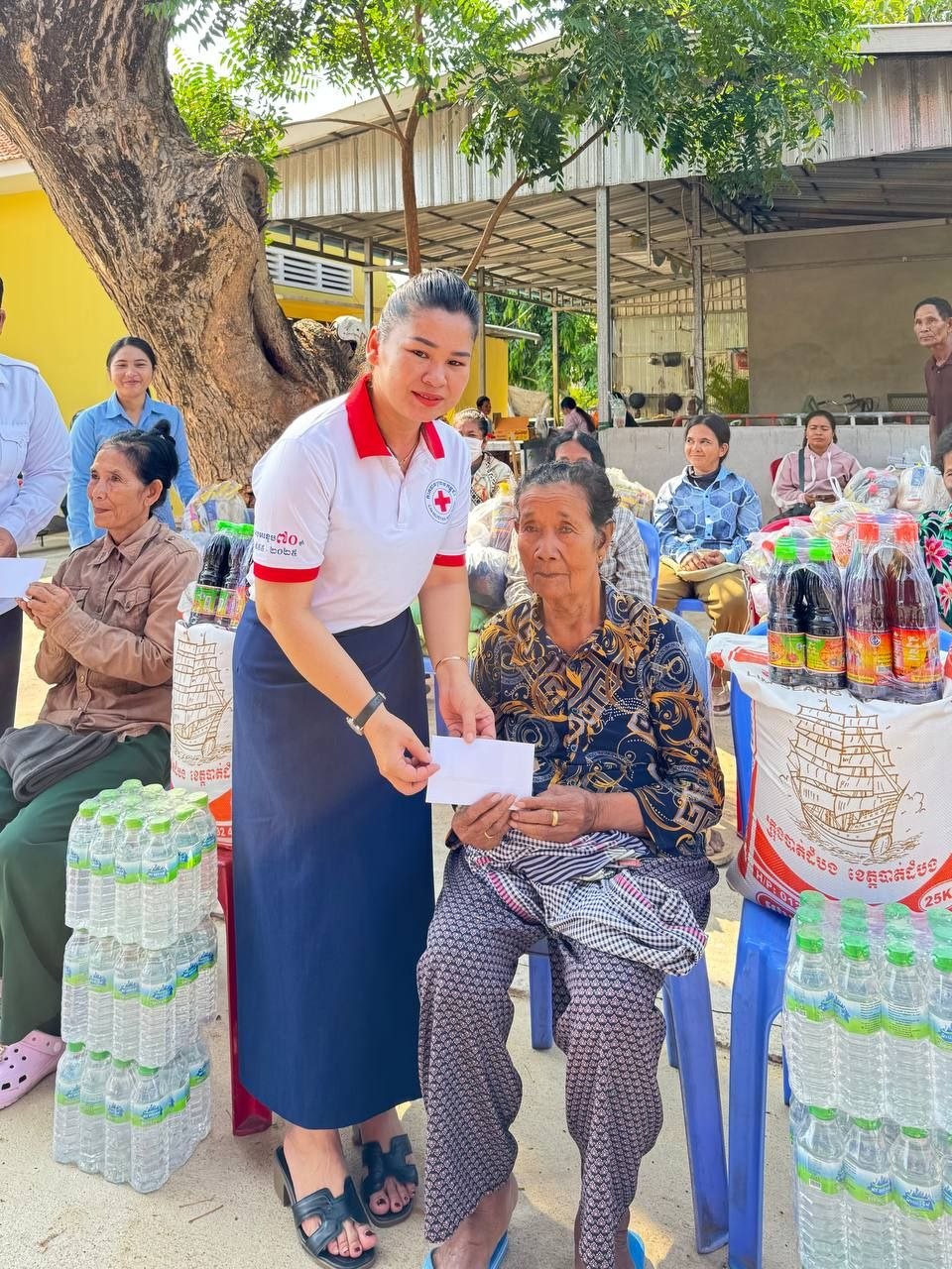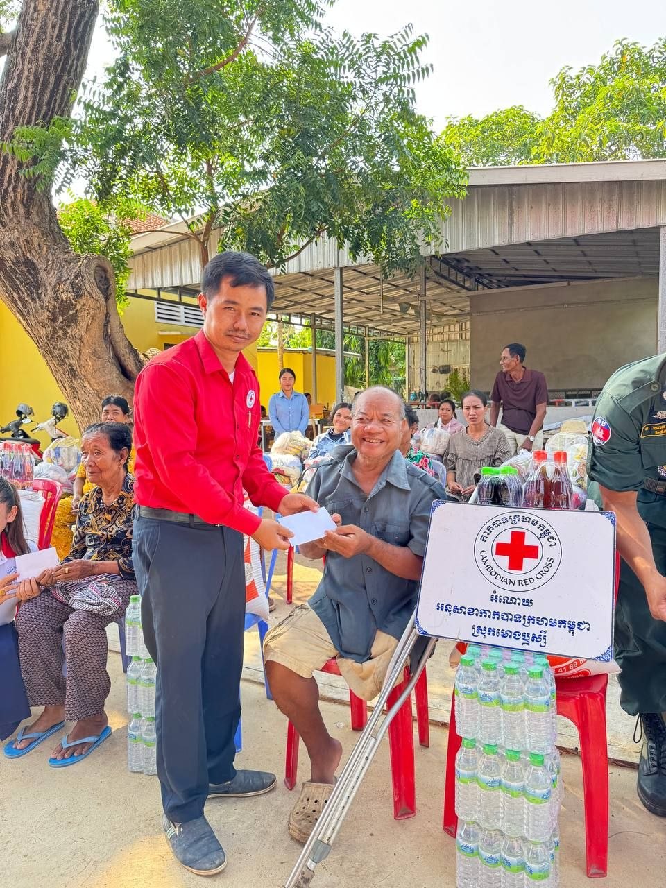 សូមបញ្ជាក់ថា ដើម្បីជួយសម្រាលការលំបាកដល់ជីវភាពរស់នៅរបស់ក្រុមគ្រួសារ អនុសាខាកាកបាទក្រហមកម្ពុជាស្រុក បាននាំយកអំណោយផ្តល់ជូនរួមមាន៖ អង្ករ ២៥គីឡូក្រាម,ទឹកត្រី១យួរ, ទឹកស៊ីអ៊ីវ ១យួរ,ទឹកបរិសុទ្ធ៣យួរ និងថវិកាចំនួន២ម៉ឺនរៀលផងដែរ៕