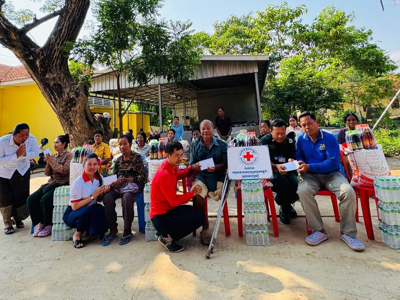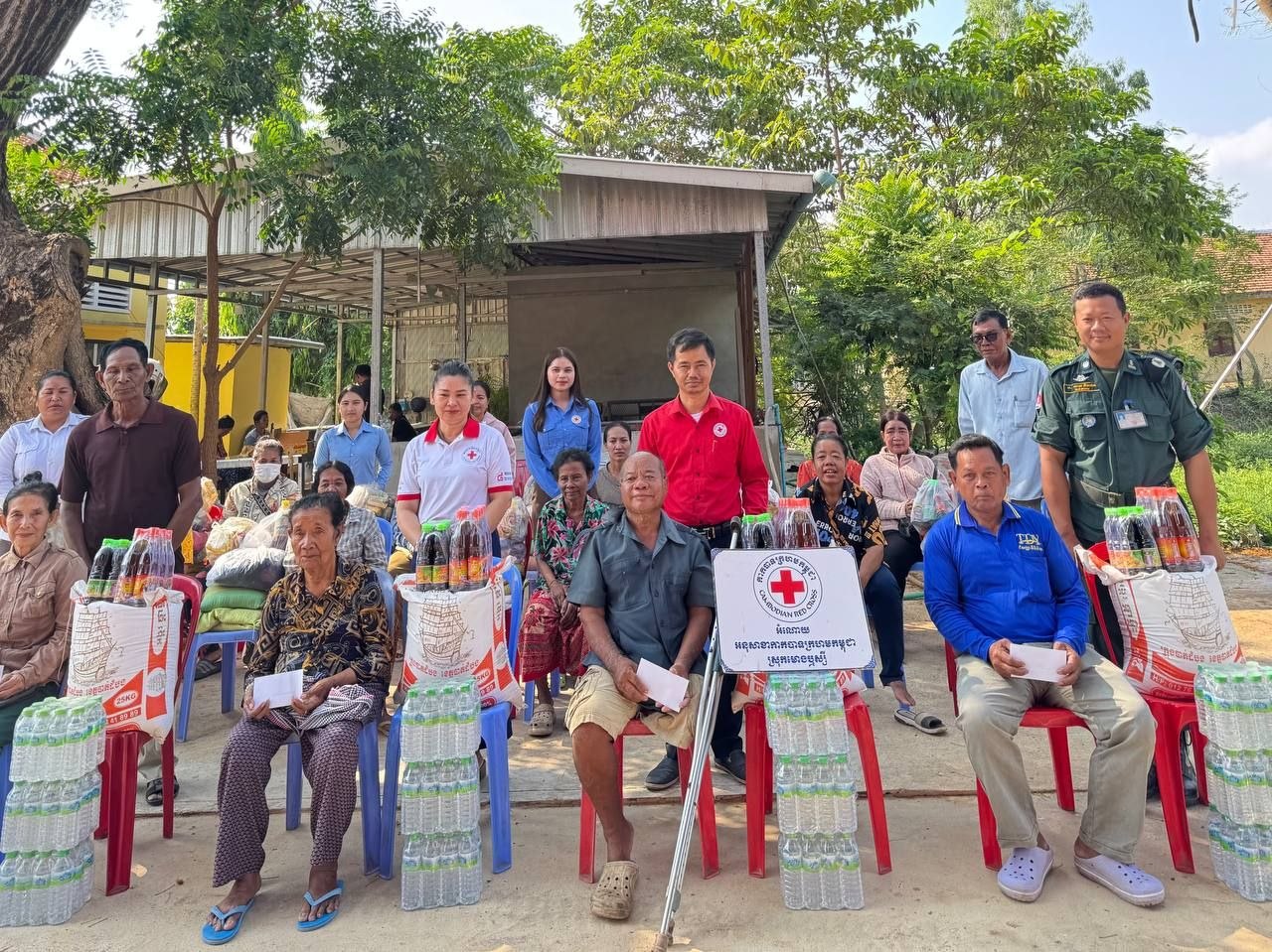 (បាត់ដំបង)៖ ក្រុមការងារអនុសាខាកាកបាទក្រហមកម្ពុជា ស្រុកមោងឬស្សី ដែលមានលោក ទេព ហន ជាប្រធាន នៅព្រឹកថ្ងៃទី២៦ ខែមីនា ឆ្នាំ២០២៦ បានចាត់ក្រុមការងារដឹកនាំ ដោយលោកស្រី លឹម រដ្ឋមុនី អភិបាលរងស្រុក និងជាអនុប្រធាន គណៈកម្មាធិការអនុសាខាស្រុក និងសហការីបានចុះសួរសុខទុក្ខ និងនាំយកអំណោយមនុស្សធម៌របស់សប្បុរសជន ផ្តល់ជូនគ្រួសារ ប្រជាពលរដ្ឋងាយរងគ្រោះបំផុត រួមមាន ជនចាស់ជរា ជនមានពិការភាព ស្រ្តីមេម៉ាយ ក្រុមគ្រួសារមកពីគ្រួសារអតីតយុទ្ធជន និងកងទ័ពជួរមុខដែលជួបការលំបាក ក្នុងជីវភាពរស់នៅប្រចាំថ្ងៃចំនួន ១៤ គ្រួសារ រស់នៅភូមិព្រៃតូច ឃុំព្រៃតូច ស្រុកមោងឫស្សី ខេត្តបាត់ដំបង។