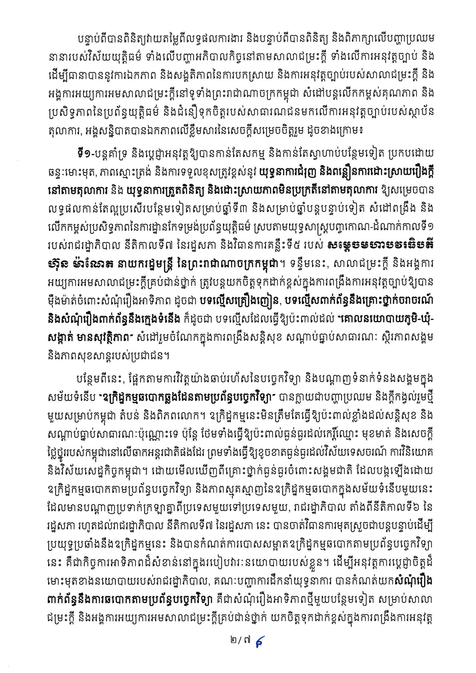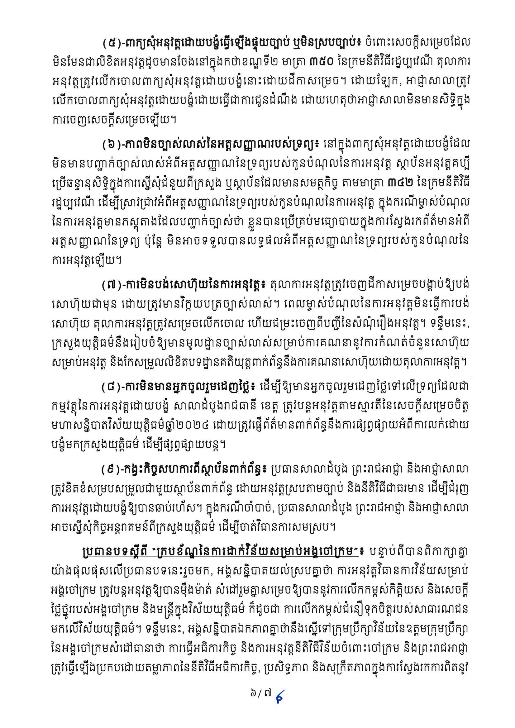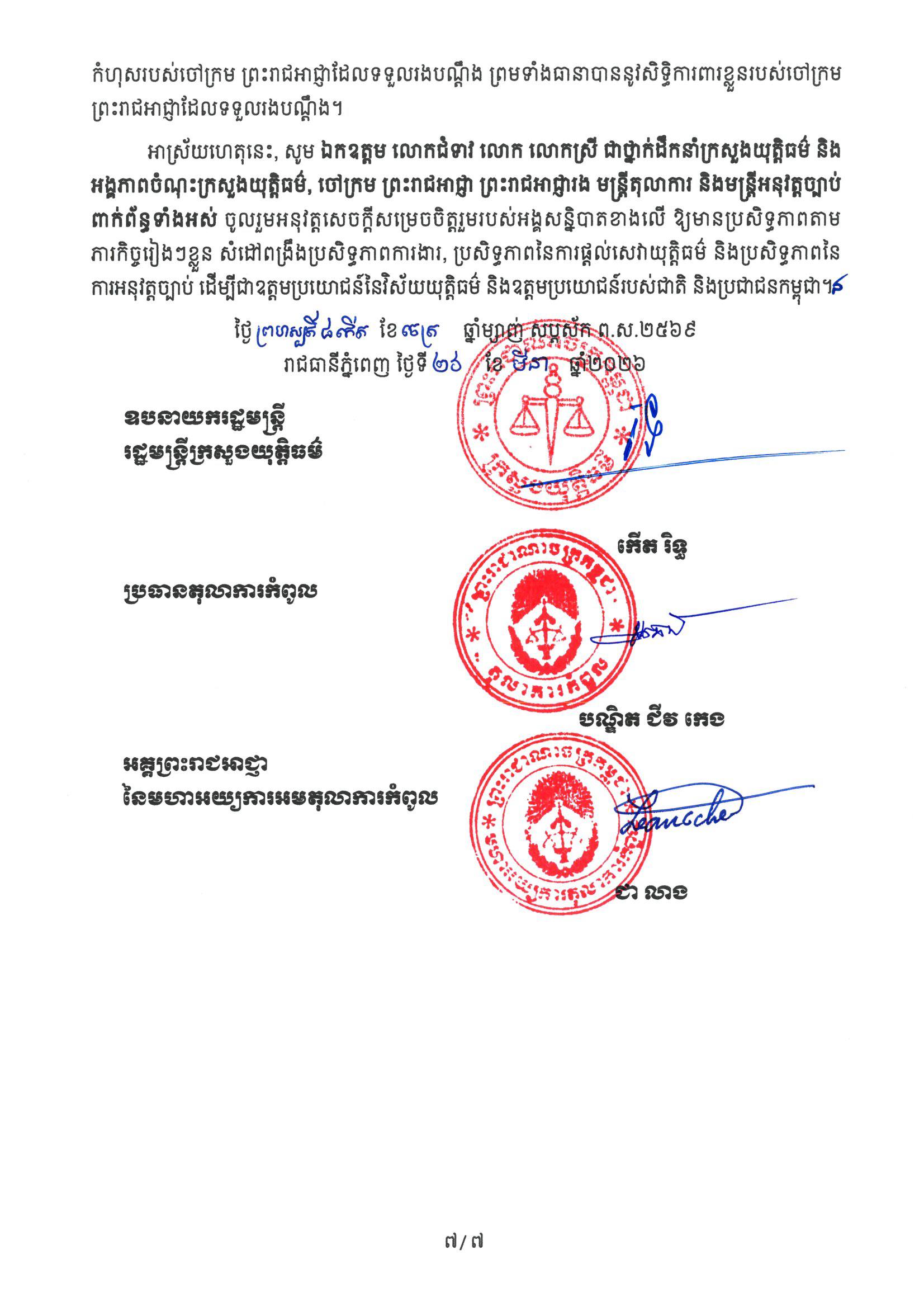 ខាងក្រោមនេះជាសេចក្តីសម្រេចិត្តក្រសួងយុត្តិធម៌៖