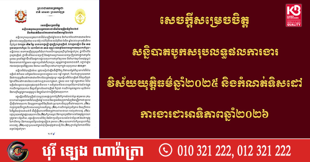 ក្រសួងយុត្តិធម៌ ចេញសេចក្តីសម្រេចចិត្ត ស្តីពីសន្និបាតបូកសរុបលទ្ធផលការងារវិស័យយុត្តិធម៌ឆ្នាំ២០២៥ និងកំណត់ទិសដៅការងារអាទិភាពឆ្នាំ២០២៦