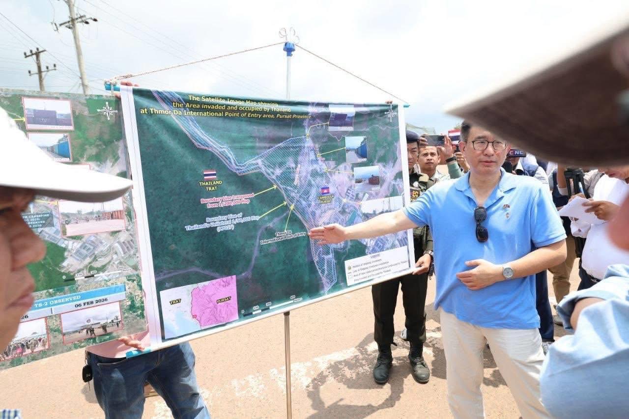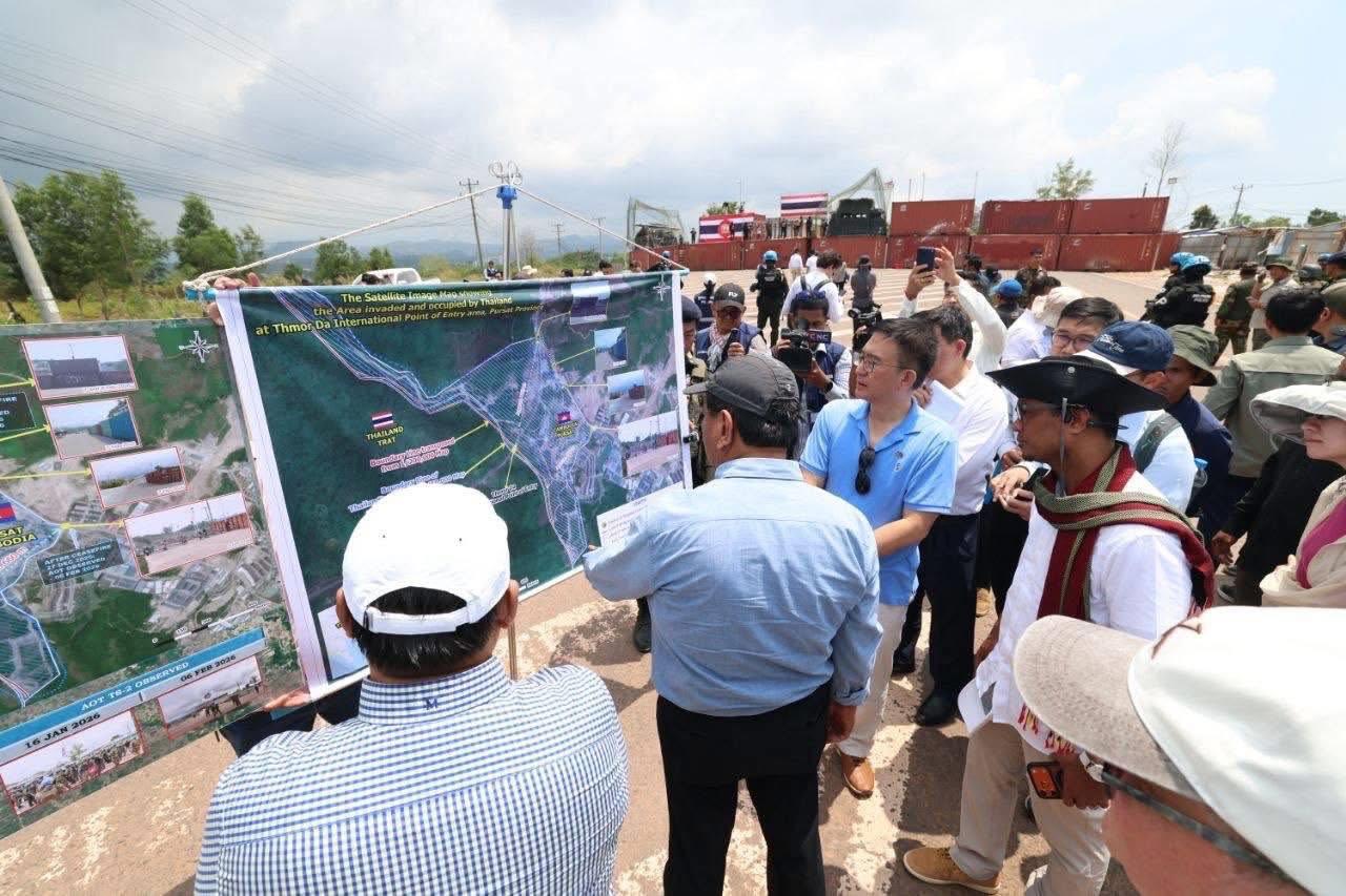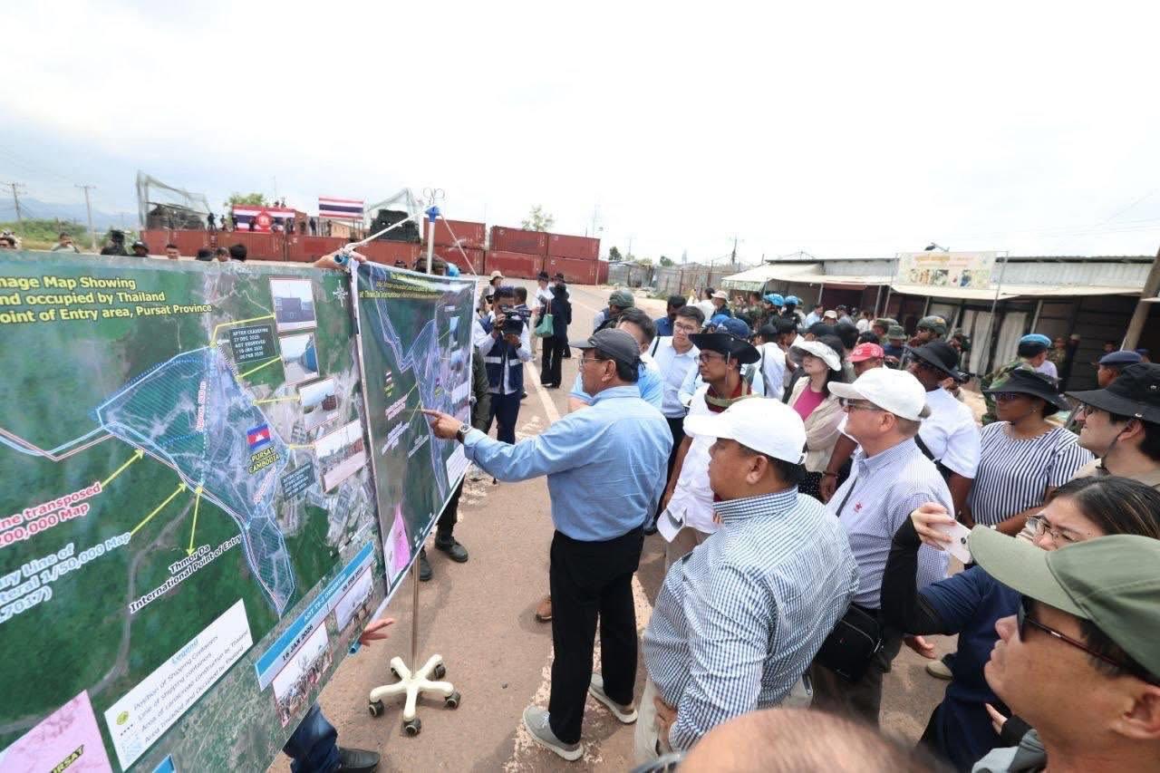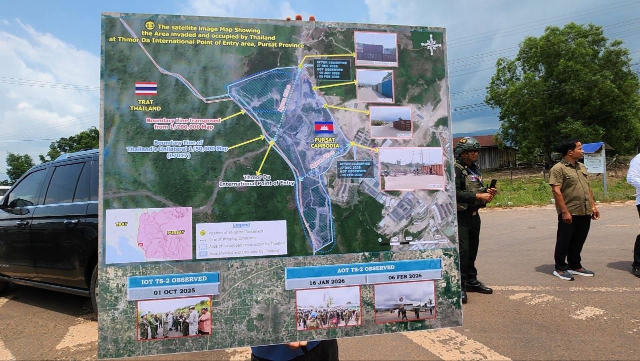 ជាក់ស្តែងនៅថ្ងៃទី២៧ ខែមីនា ឆ្នាំ២០២៦នេះ ឧបនាយករដ្ឋមន្ត្រី ប្រាក់ សុខុន រដ្ឋមន្ត្រីក្រសួងការបរទេស និងសហប្រតិបត្តិការអន្តរជាតិ បានដឹកនាំឯកអគ្គរាជទូត ឯកអគ្គរដ្ឋទូត តំណាងទូត និងតំណាងបេសកកម្មបរទេសប្រចាំកម្ពុជា ចុះទៅពិនិត្យដោយផ្ទាល់ការដាក់ទូកុងតឺន័រ និងការដំឡើងទង់ជាតិ ពីសំណាក់យោធាថៃនៅឃុំថ្មដា ដែលជាការបំពានអធិបតេយ្យភាពកម្ពុជា។