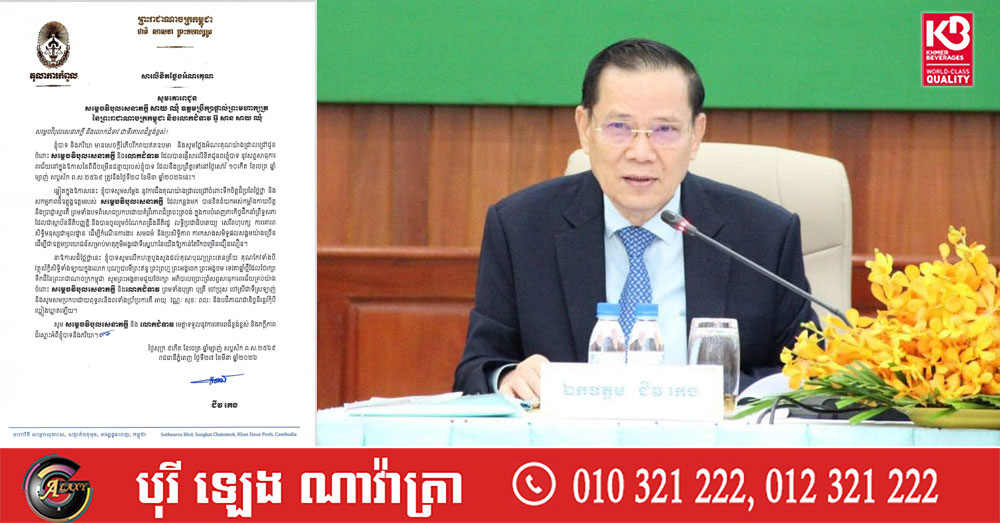 (ភ្នំពេញ)៖ ឯកឧត្តមបណ្ឌិត ជីវ កេង ប្រធានតុលាការកំពូល បានចេញសារលិខិតថ្លែងអំណរគុណ គោរពជូនសម្តេចវិបុលសេនាភក្តី សាយ ឈុំ ឧត្តមប្រឹក្សាផ្ទាល់ព្រះមហាក្សត្រ ដែលបានផ្ញើសារលិខិតជូនពរ នូវសព្ទសាធុការពរជ័យ នៅក្នុងឱកាសនៃពិធីចម្រើនជន្មាយុ។