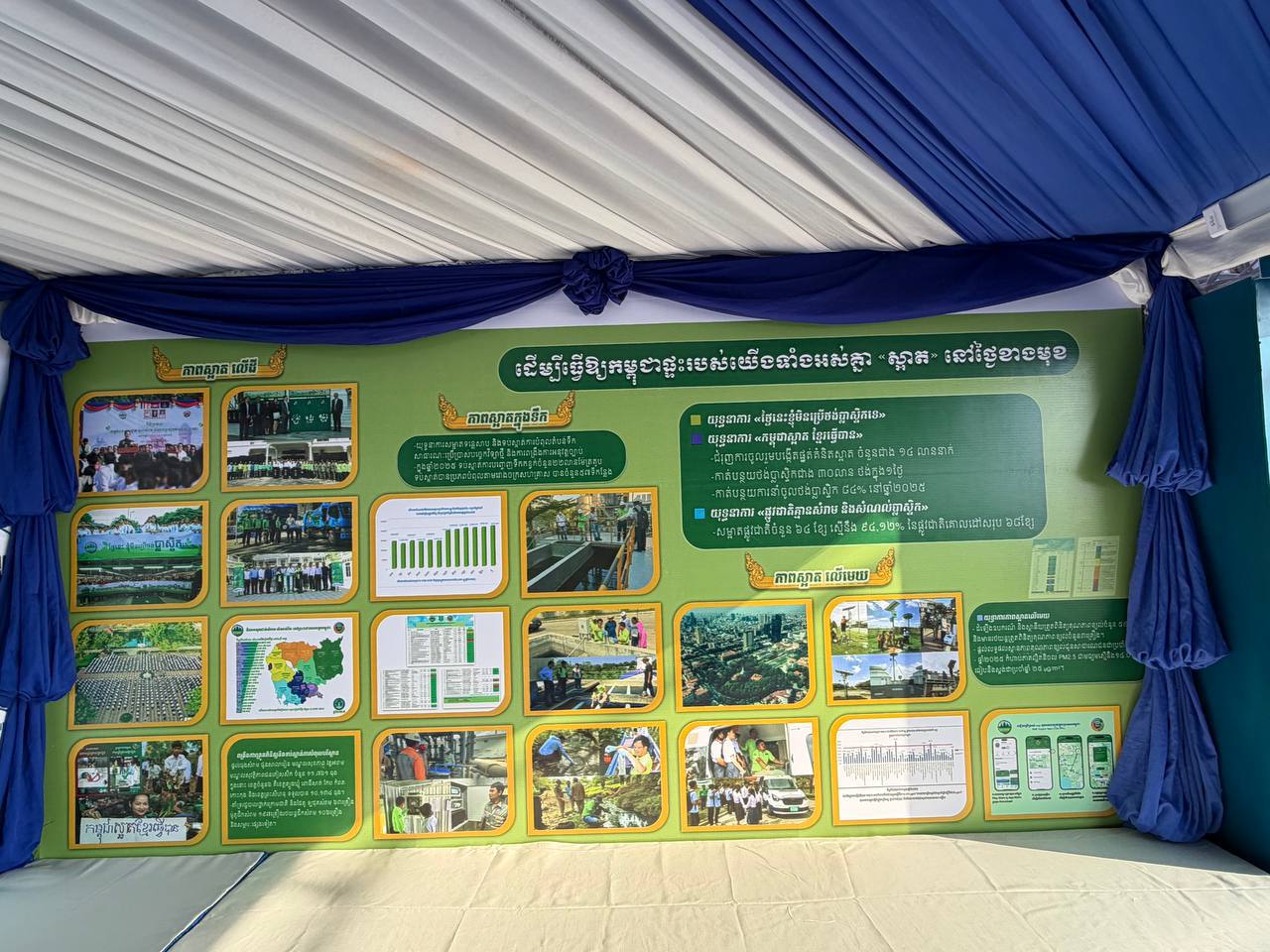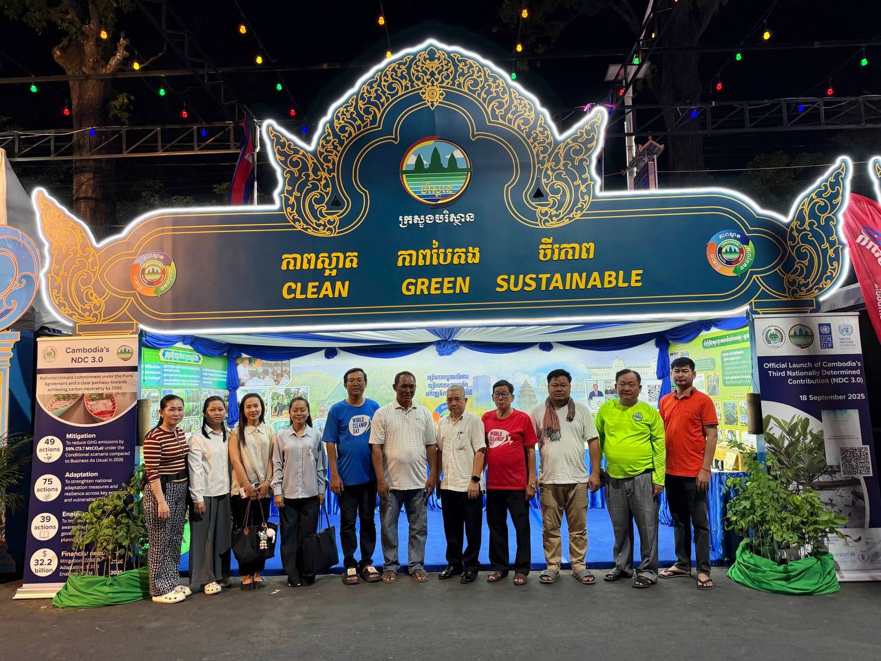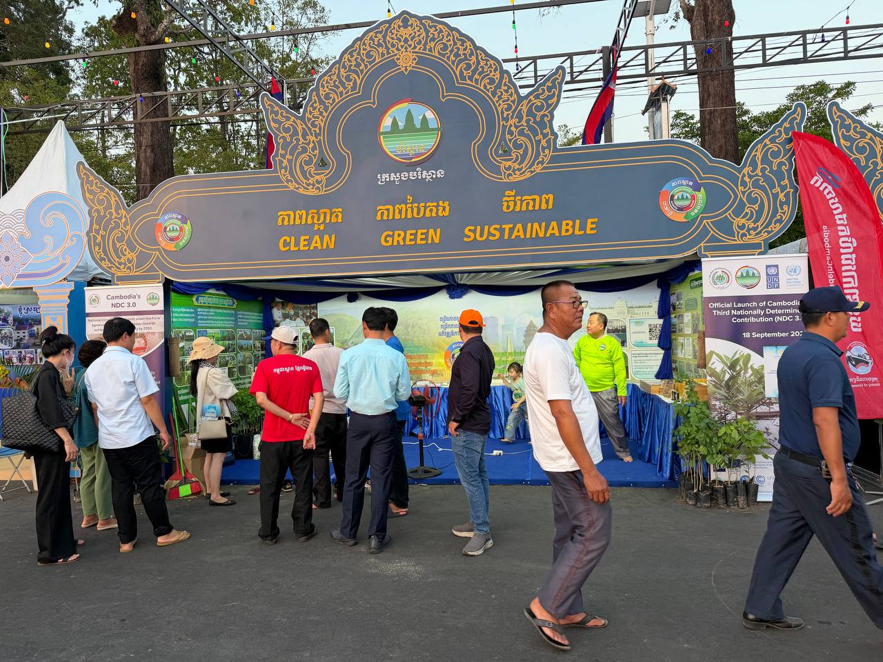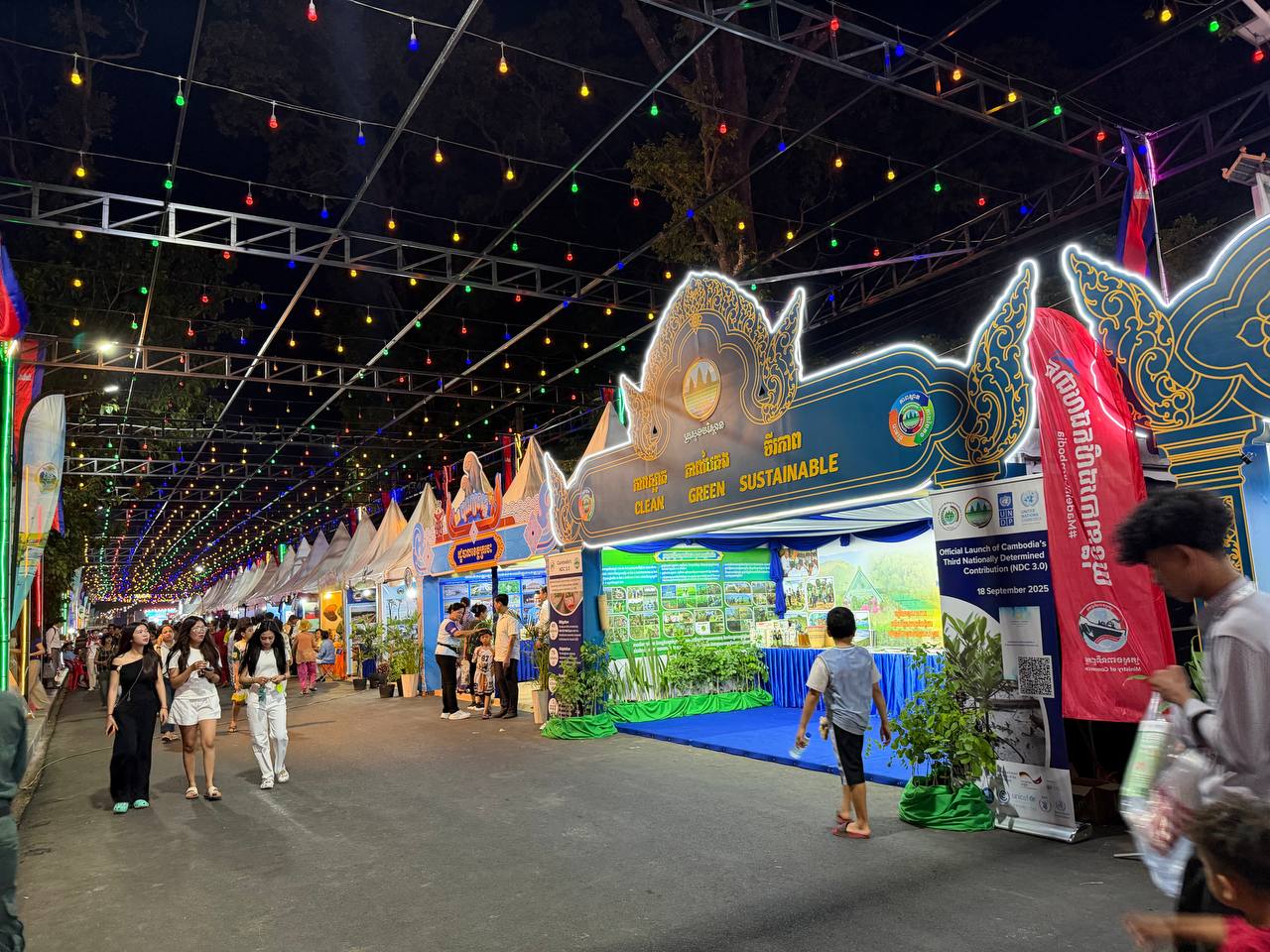ដោយឡែកភាពបៃតង បានលើកឡើងពីការជំរុញការដាំដើមឈើឱ្យបានច្រើន ក្នុងនោះក្រសួងបានចែកកូនឈើជូនប្រជាពលរដ្ឋយកទៅដាំក្នុងឆ្នាំ២០២៥ ចំនួនជាង ៣,៤លានដើម តាមរយៈយុទ្ធនាការ «ពន្លកបៃតង» និងការពង្រឹងការអនុវត្តច្បាប់តឹងរ៉ឹង ដើម្បីការពារនិងអភិរក្សធនធានធម្មជាតិ។ ជាមួយគ្នានេះដែរ ស្តង់ពិព័រណ៍បរិស្ថានបានផ្តោតលើ ការពង្រឹងនិងពង្រីកកិច្ចសហប្រតិបត្តិការ ជាមួយដៃគូជាតិ អន្តរជាតិ ដៃគូអភិវឌ្ឍន៍ រួមជាមួយក្រសួង ស្ថាប័នពាក់ព័ន្ធ រដ្ឋបាលថ្នាក់ក្រោមជាតិ ក្នុងគោលដៅចម្បងគឺប្រែក្លាយកម្ពុជា ឱ្យទៅជាប្រទេសដែលមានអព្យាក្រឹតកាបូន និងមានភាពធន់នឹងការប្រែប្រួលអាកាសធាតុ។