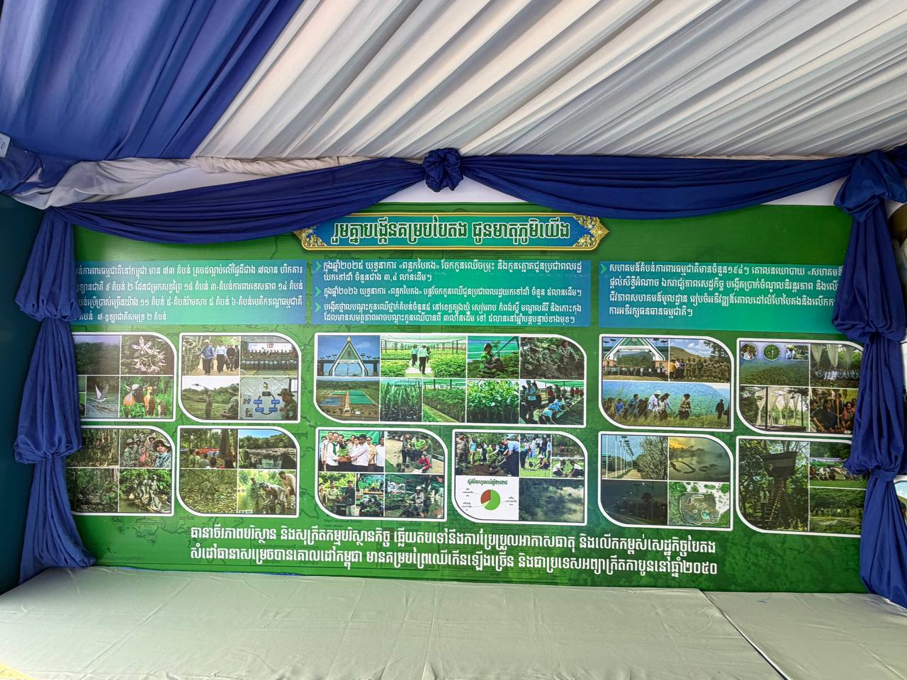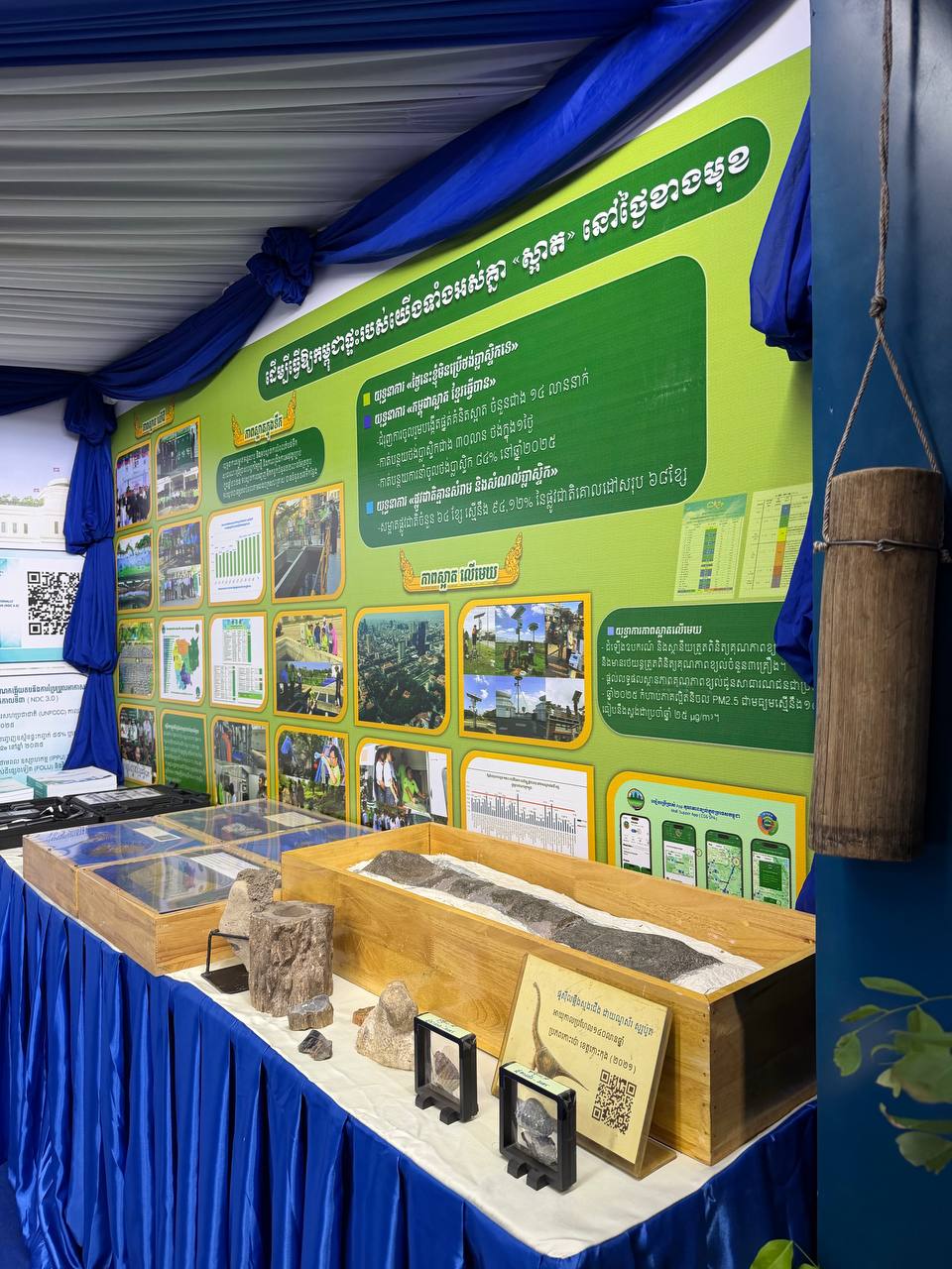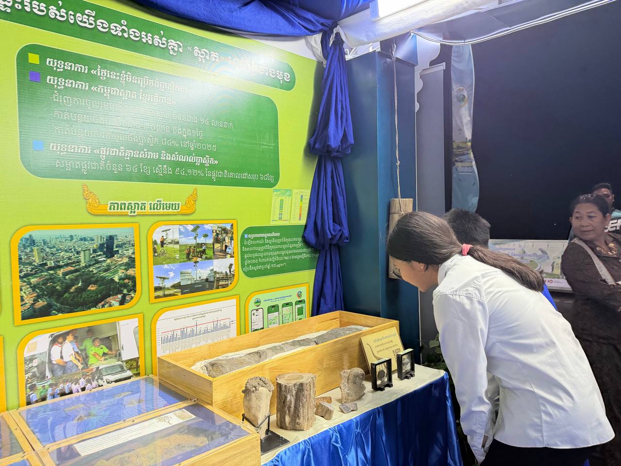 ក្នុងពិធីនេះ ក្រសួងបរិស្ថាន បានតាំងបង្ហាញផងដែរ របកគំហើញសំណាកផូស៊ីល ឧបករណ៍វាស់ស្ទង់គុណភាពទឹក ឧបករណ៍ត្រួតពិនិត្យគុណភាពខ្យល់ រួមជាមួយលិខិតបទដ្ឋានគតិយុត្ត សម្រាប់គាំទ្រការអនុវត្ត និងប្រសិទ្ធភាពការងារក្នុងវិស័យបរិស្ថាន និងពិរណ៍កូនឈើព្រៃ ដែលជាផ្នែកមួយផ្សព្វផ្សាយជំរុញដល់យុទ្ធនាការបណ្តុះ «ពន្លកបៃតង» ដែលក្រសួងបរិស្ថាន បានបង្កើតបានថ្នាលបណ្តុះកូនថ្នាក់តំបន់ចំនួន៥ នៅខេត្តត្បូងឃ្មុំ កំពង់ស្ពឺ សៀមរាម មណ្ឌលគីរី និងកោះកុង និងថ្នាលមន្ទីរបរិស្ថានរាជធានី ខេត្តទូទាំងប្រទេស ដើម្បីចែកជូនកូនឈើជូនប្រជាពលរដ្ឋយកទៅដាំនៅរដូវវស្សាឆ្នាំ២០២៦នេះ ចំនួន៥លានដើម៕