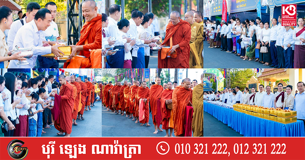 (ក្រចេះ)៖ ក្រសួងទេសចរណ៍ រួមជាមួយគណៈកម្មការអន្តរក្រសួងរៀបចំព្រឹត្តិការណ៍បុណ្យទន្លេ និងរដ្ឋបាលខេត្តក្រចេះ បានរៀបចំពិធីរាប់បាត្រព្រះសង្ឃចំនួន ៩៩អង្គ ក្នុងគោលបំណងឧទ្ទិសកុសលផលបុណ្យជូនដល់បុព្វបុរស វីរកងទ័ព និងកងកម្លាំងប្រដាប់អាវុធគ្រប់ប្រភេទ ដែលបានពលីក្នុងបុព្វហេតុការពារជាតិ មាតុភូមិ និងប្រជាជន ក្នុងឱកាសប្រារព្ធព្រឹត្តិការណ៍បុណ្យទន្លេលើកទី១០ នៅខេត្តក្រចេះ ថ្ងៃទី២៨ ខែមីនា ឆ្នាំ២០២៦។