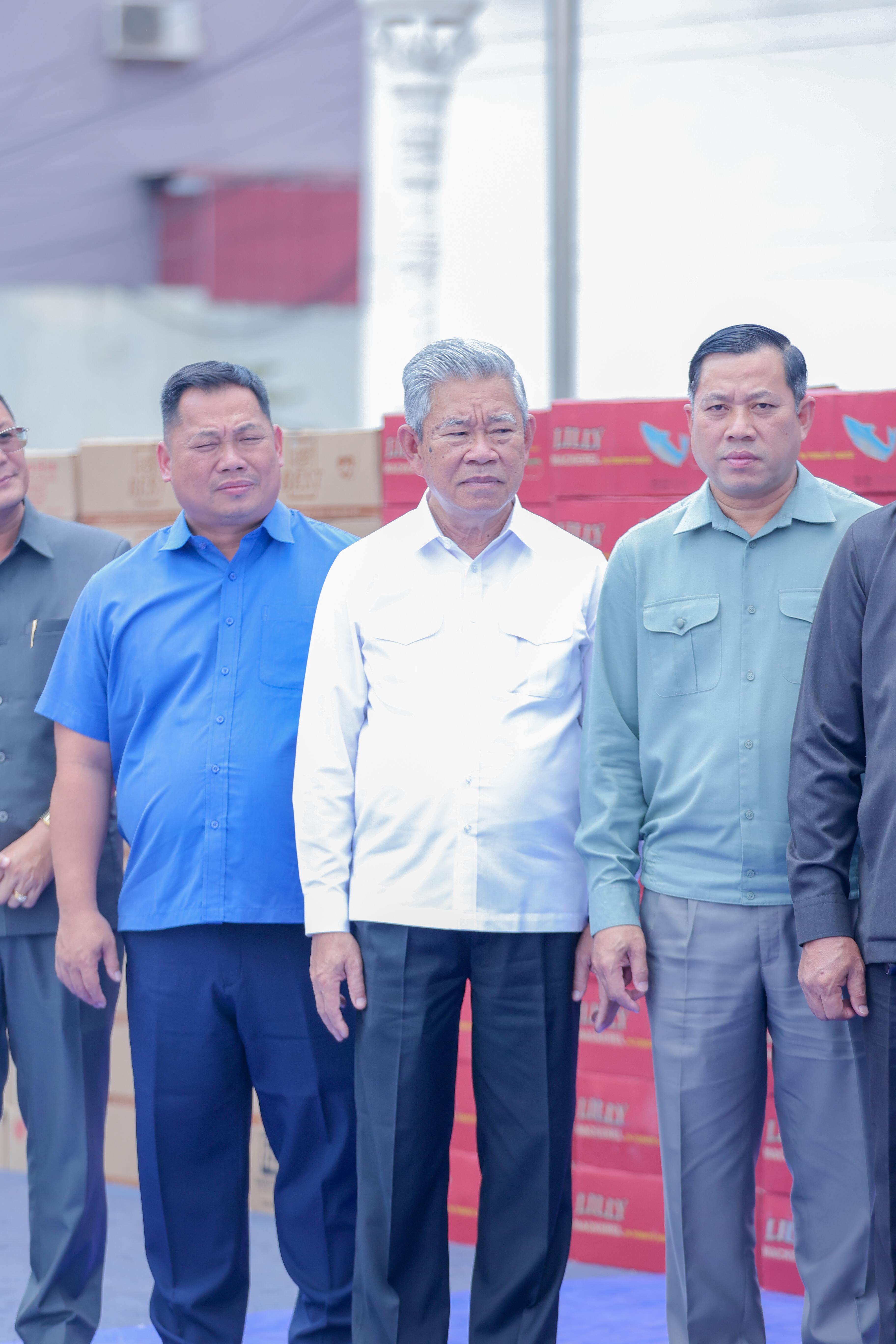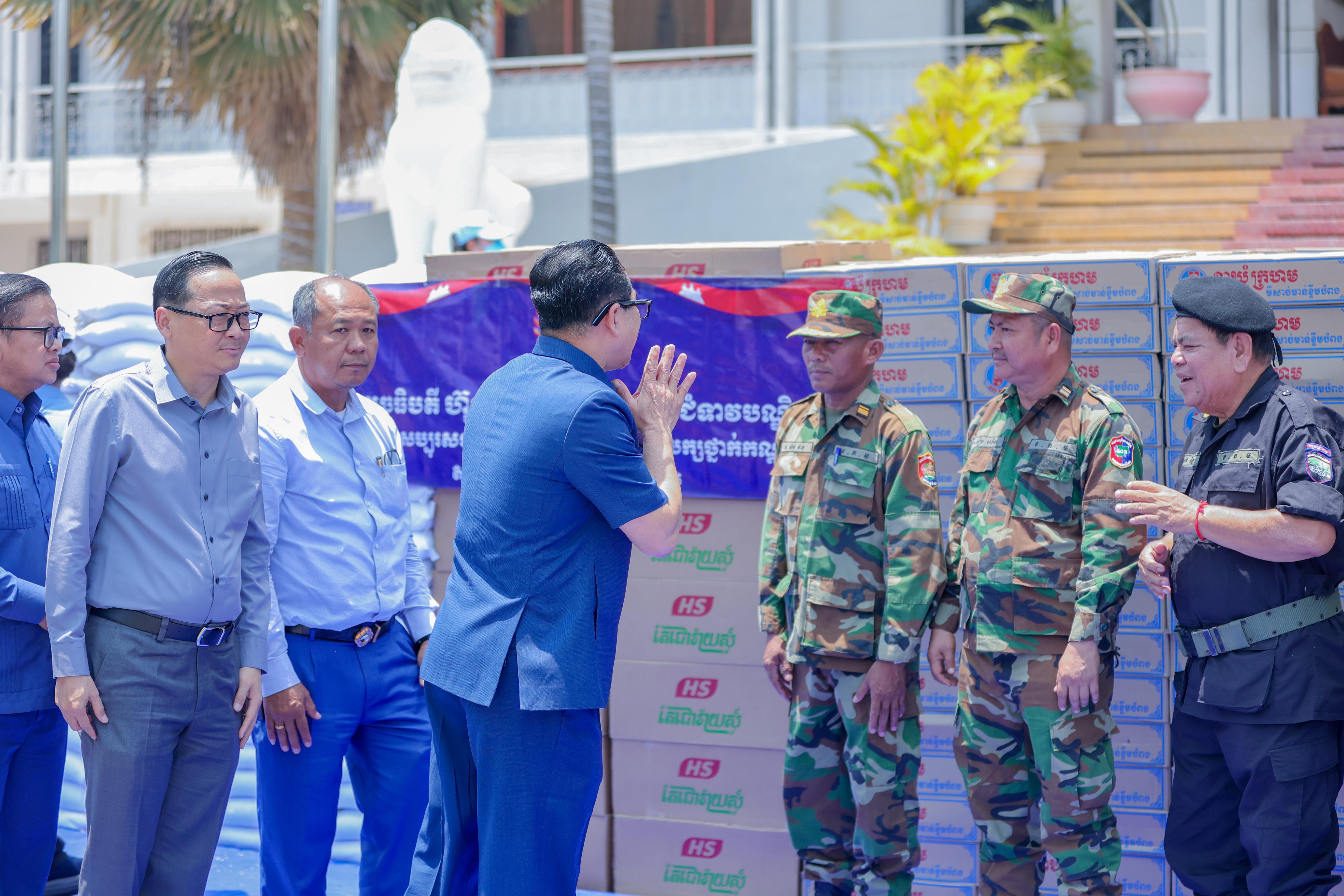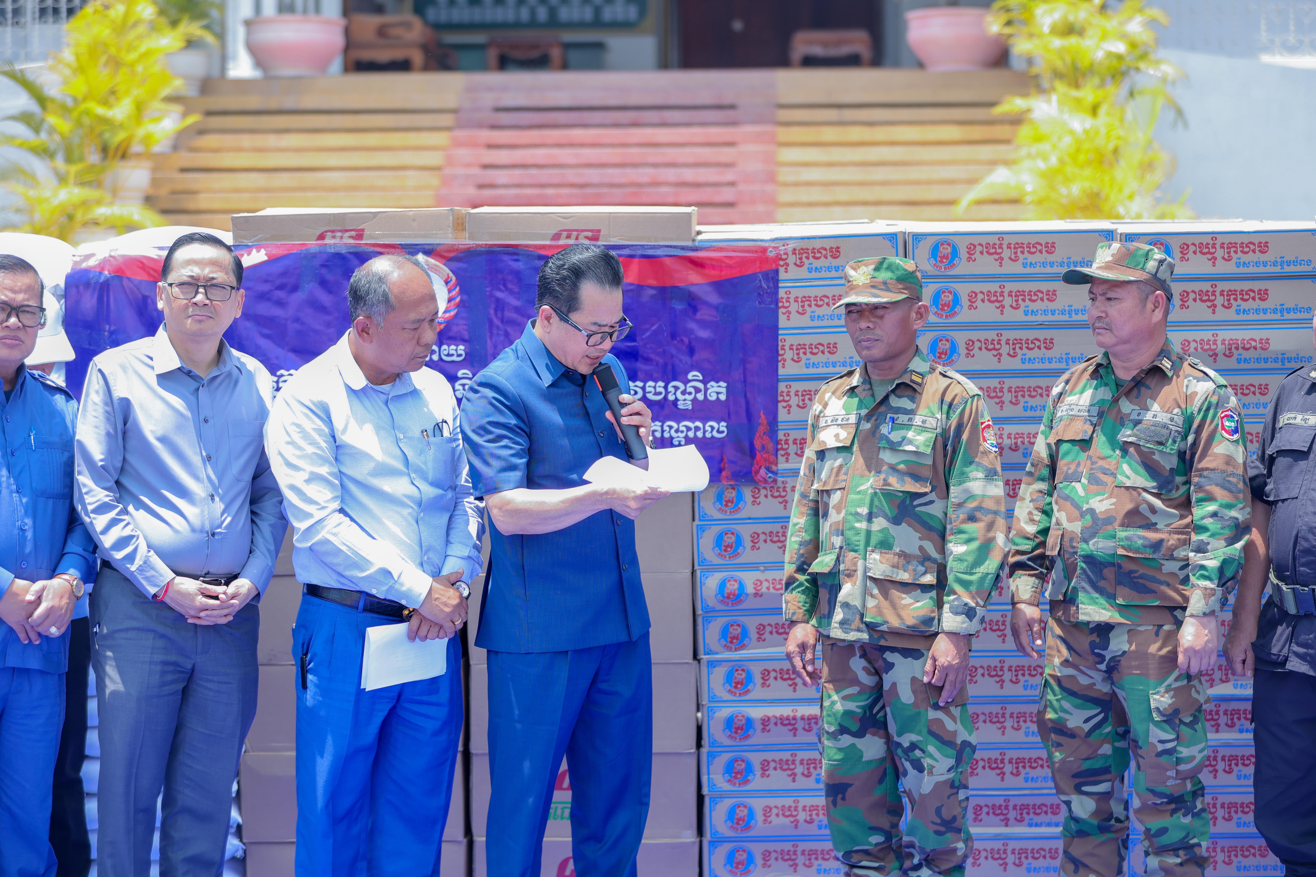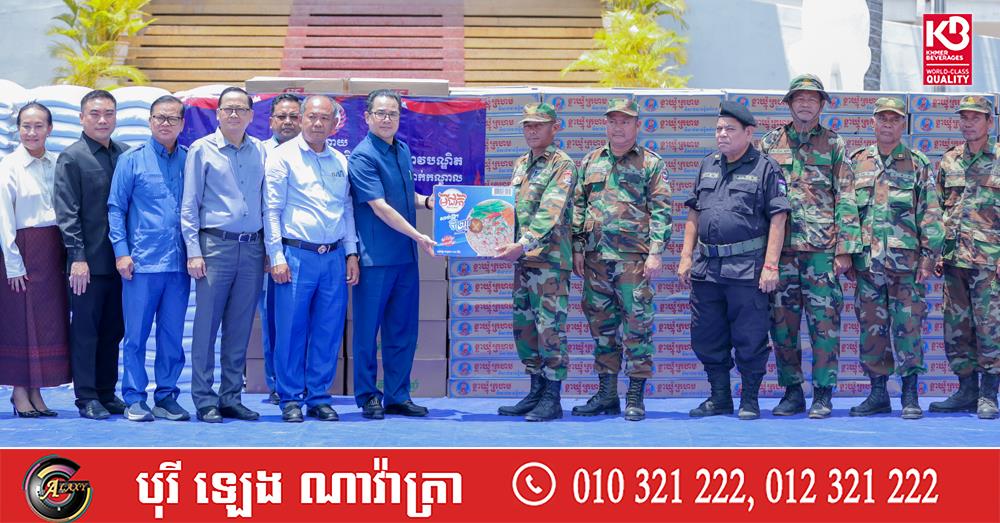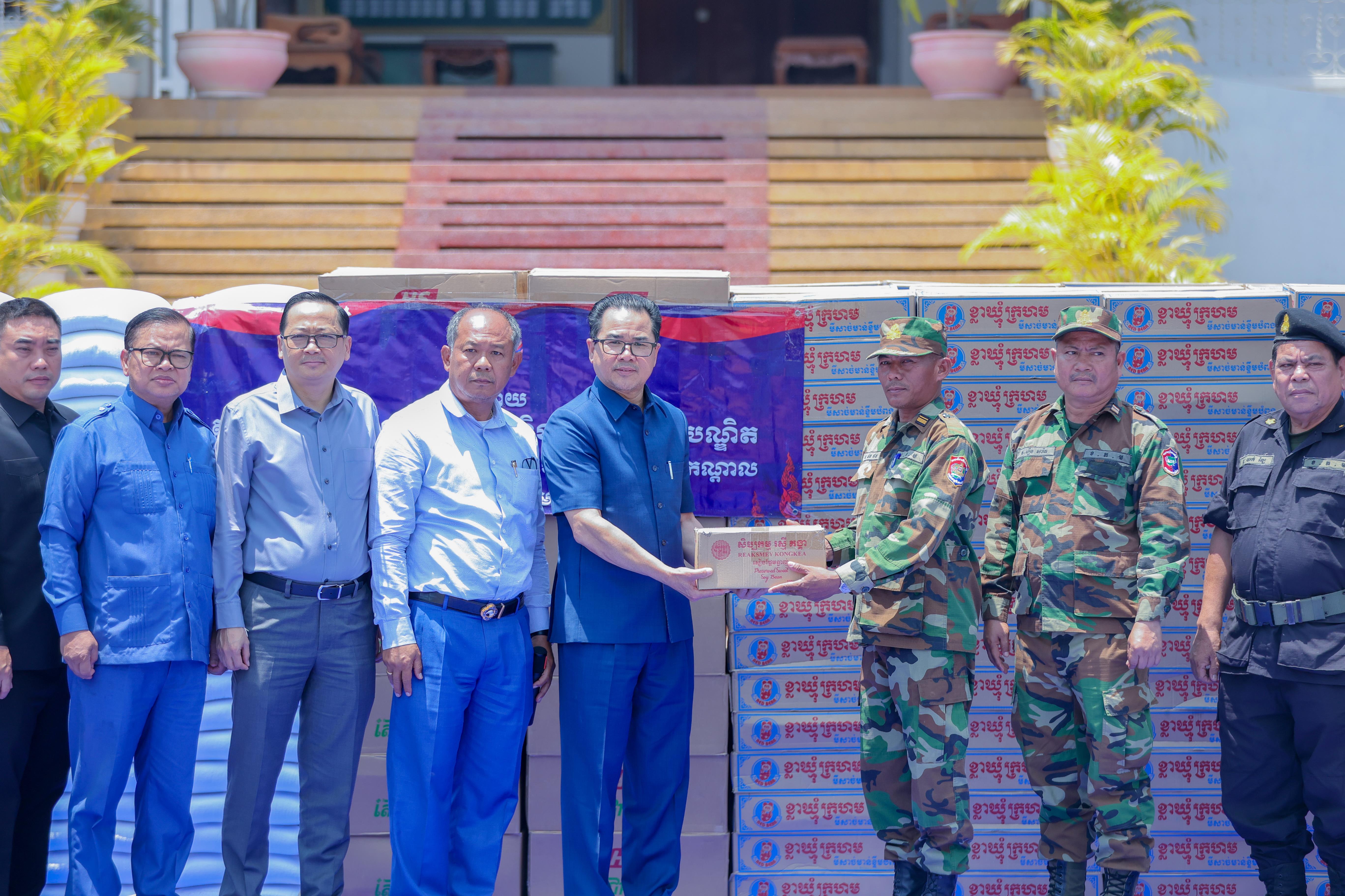 សម្ភារៈ និងស្បៀងអាហាររបស់សម្ដេចធិបតី និងលោកជំទាវបណ្ឌិត ត្រូវបានបណ្ឌិត ជ្រុន ថេរ៉ាវ៉ាត នាំយកជូនដល់កម្លាំងជួរមុខទិសបន្ទាយមានជ័យ