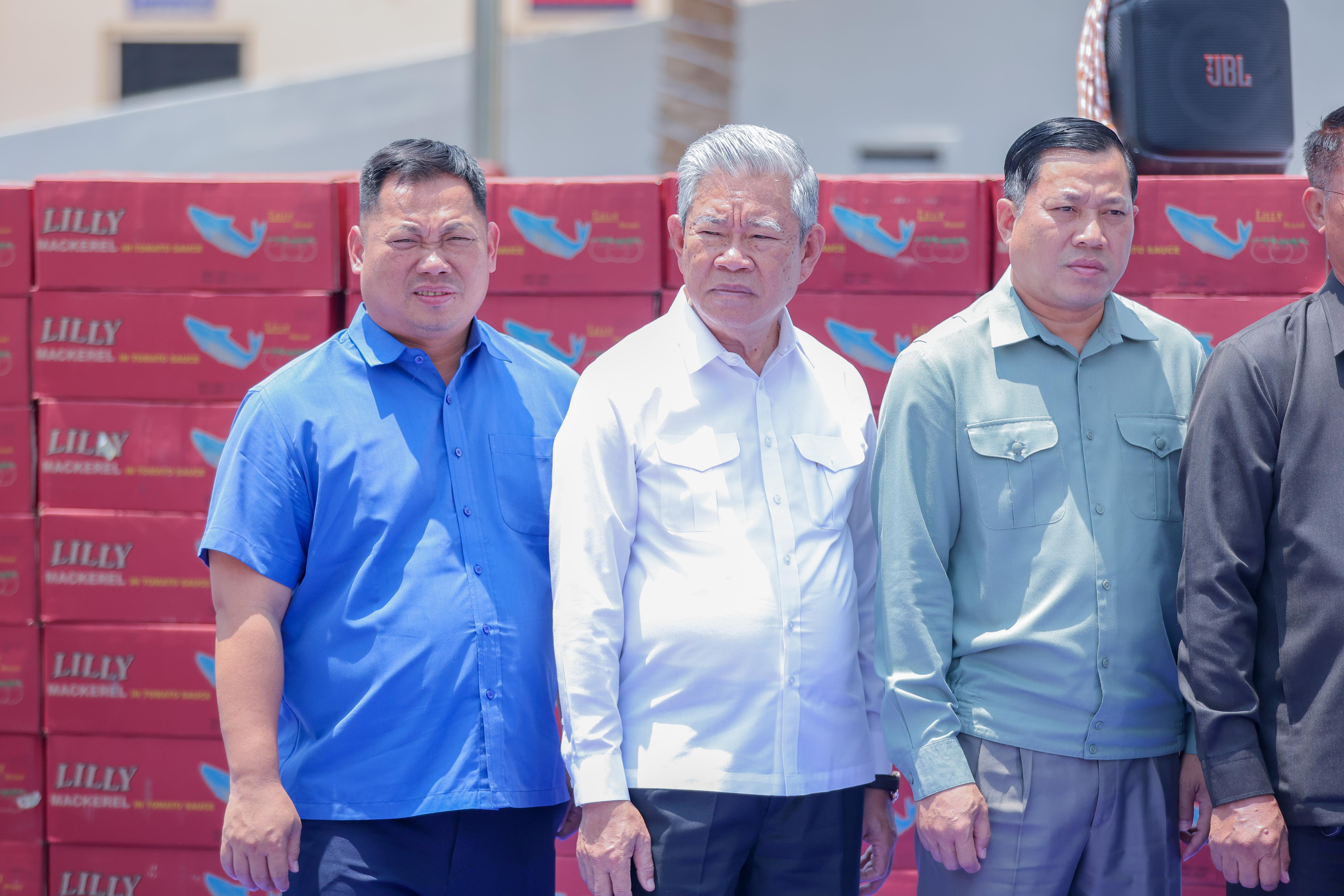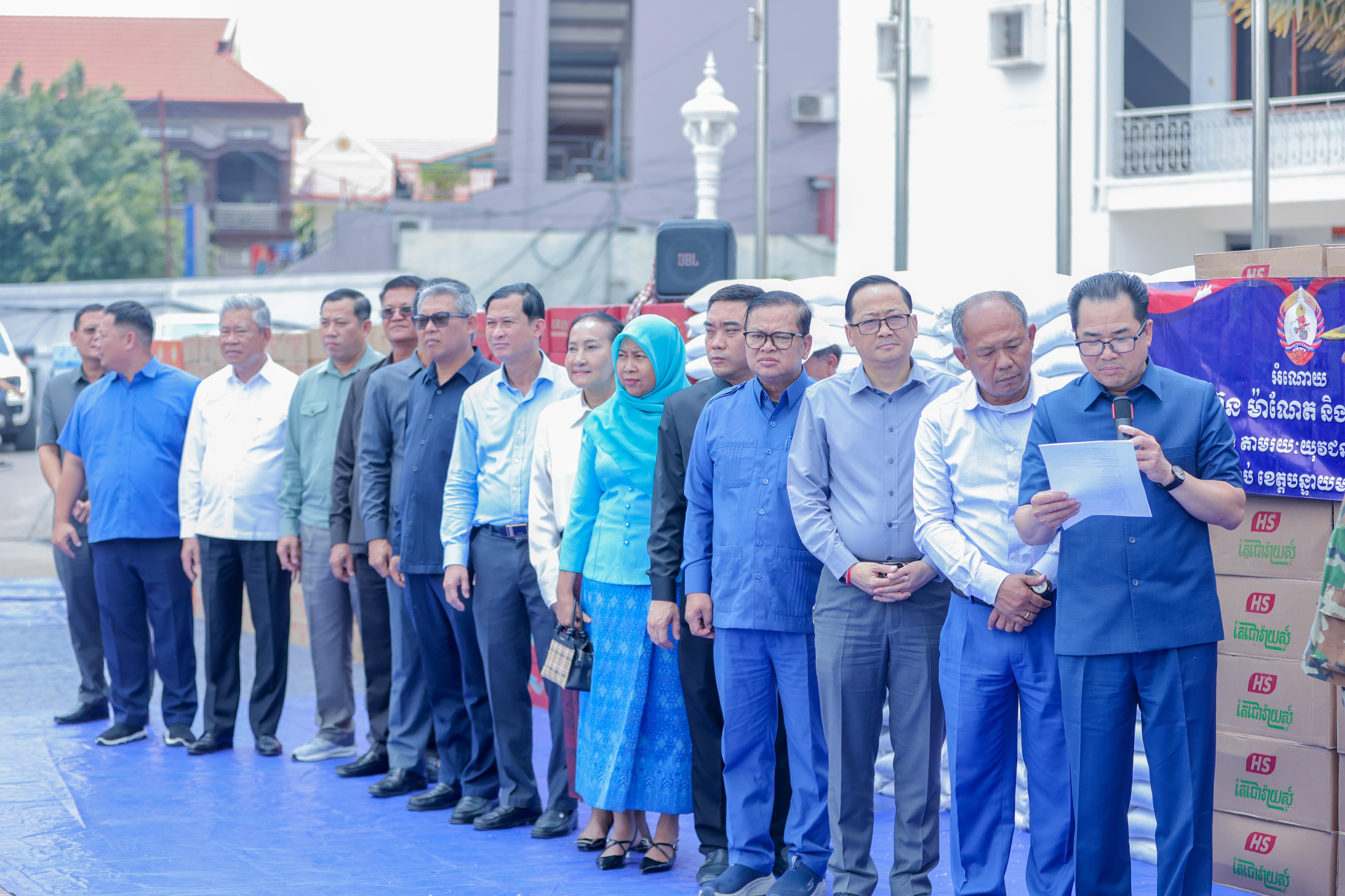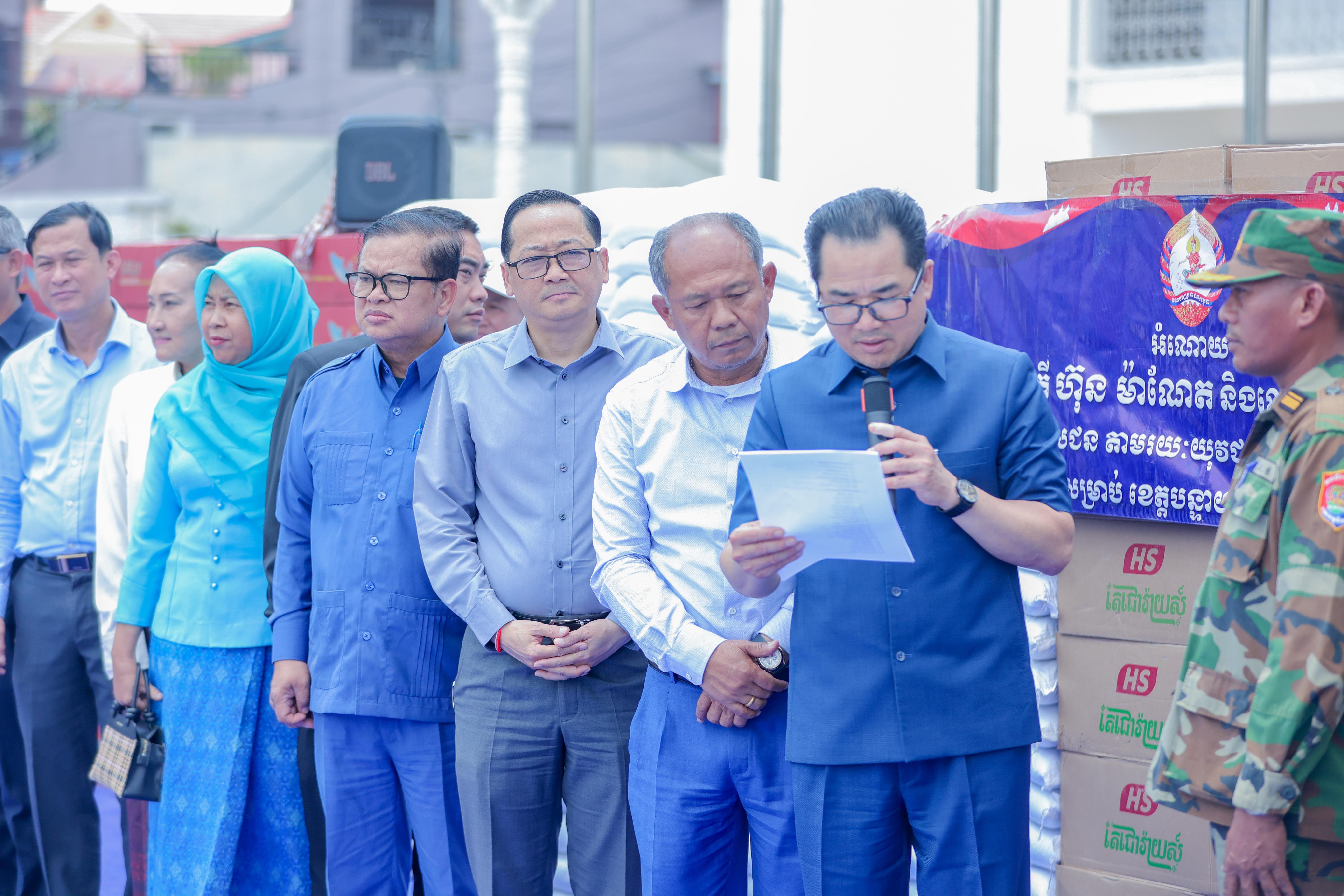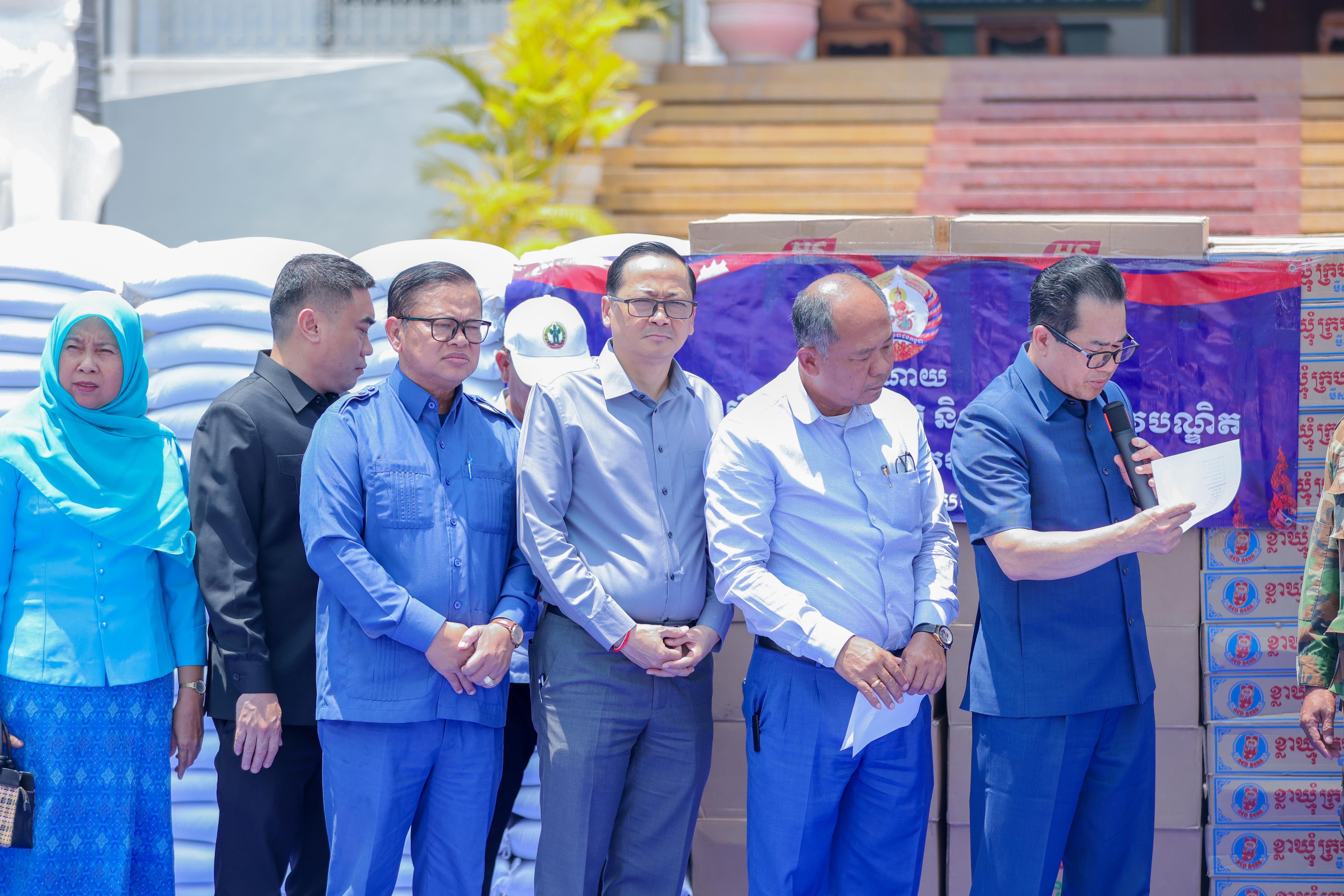 សម្ភារៈ និងស្បៀងអាហាររបស់សម្ដេចធិបតី និងលោកជំទាវបណ្ឌិត ត្រូវបានបណ្ឌិត ជ្រុន ថេរ៉ាវ៉ាត នាំយកជូនដល់កម្លាំងជួរមុខទិសបន្ទាយមានជ័យ