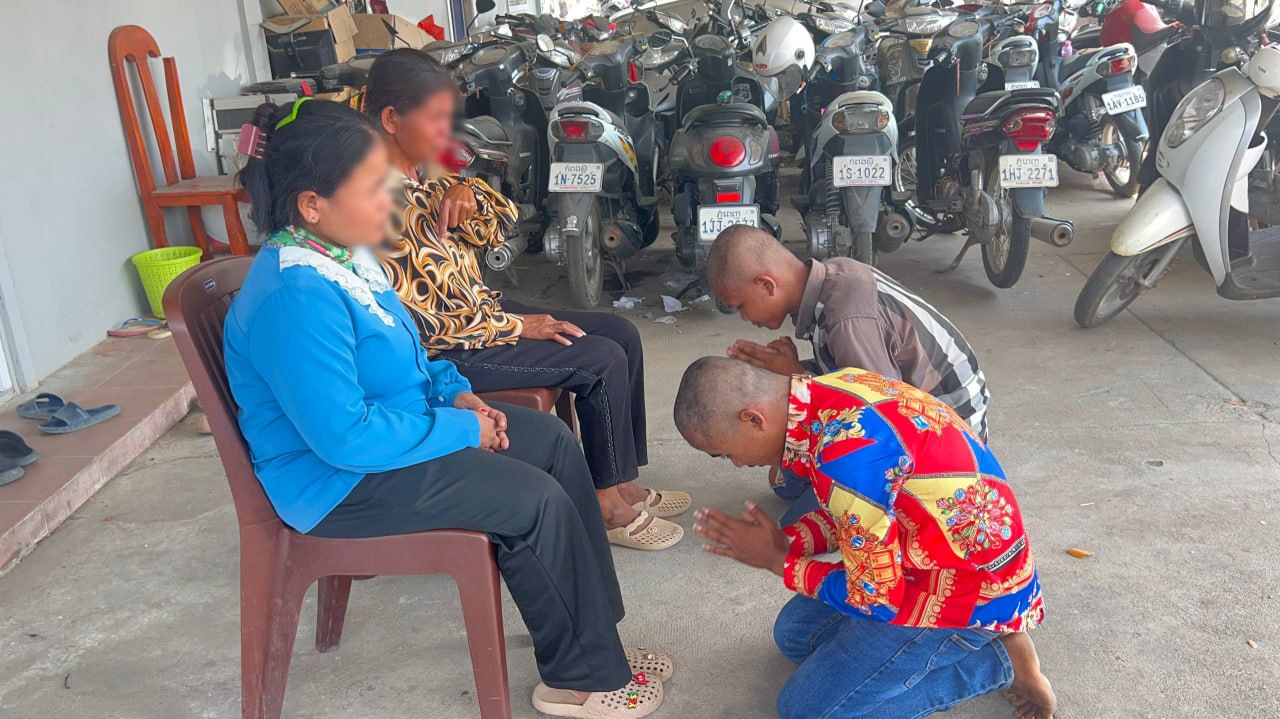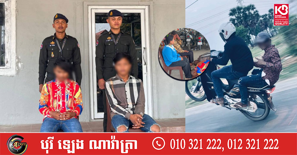 កម្លាំងអាវុធហត្ថខេត្តកំពង់ស្ពឺ តាមឃាត់ក្មេងស្ទាវ២នាក់ ដែលបង្ហោះម៉ូតូយ៉ាងអនាធិបតេយ្យ, ក្រោយអប់រំ និងឲ្យលត់ជង្គង់សំពះសុំទោសឪពុកម្តាយ រួចអនុញ្ញាតឲ្យត្រឡប់ទៅវិញ
