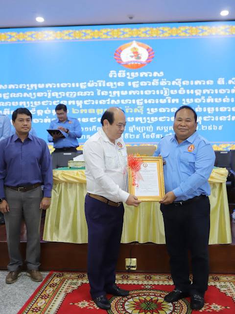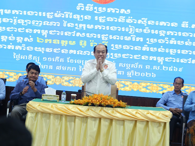 (ភ្នំពេញ)៖ លោក អ៊ូ រ៉ាស៊ី ប្រធានតំបន់ឆ្នេរខាងកើត នៃក្រុមការងាររៀបចំអង្គការចាត់តាំងយុវជនគណបក្សប្រជាជនកម្ពុជា តំណាងលោក ម៉ឹង ពន្លក ប្រធានក្រុមការងាររៀបចំអង្គការចាត់តាំងយុវជនគណបក្សប្រជាជនកម្ពុជា ប្រចាំសហរដ្ឋអាមេរិក នៅថ្ងៃទី២៩ ខែមីនា ឆ្នាំ២០២៦ បានអញ្ជើញប្រកាសសមាសភាពក្រុមការងាររៀបចំអង្គការចាត់តាំងយុវជនគណបក្សប្រជាជនកម្ពុជា ប្រចាំតំបន់ឆ្នេរខាងកើតសហរដ្ឋអាមេរិក ចំនួន៤រដ្ឋ។ ពិធីនេះបានឡើងនៅវិមាន ៧មករា។