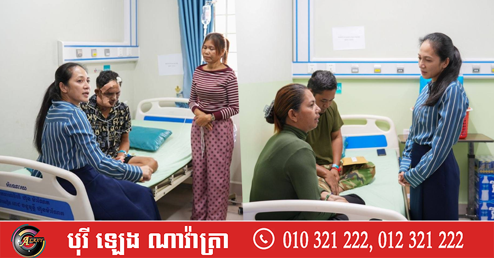 លោកជំទាវបណ្ឌិត ក៏បានពាំនាំនូវសារសួរសុខទុក្ខពីសំណាក់ សម្តេចតេជោ ប្រធានព្រឹទ្ធសភា និងសម្តេចកិត្តិព្រឹទ្ធបណ្ឌិត ព្រមទាំង សម្តេចបវរធិបតី នាយករដ្ឋមន្ត្រី ជូនដល់សាមីខ្លួន និងក្រុមគ្រួសារ ជាការលើកទឹកចិត្ត និងជូនពរដល់យោធិនកំពុងសម្រាកព្យាបាល ឆាប់ជាសះស្បើយ និងជំរុញដល់គ្រូពេទ្យ មើលថែទាំពួកគាត់ឱ្យបានដិតដល់ជាទីបំផុត ដើម្បីពួកគាត់អាចត្រឡប់ទៅកាន់គេហដ្ឋានវិញឆាប់ៗ៕