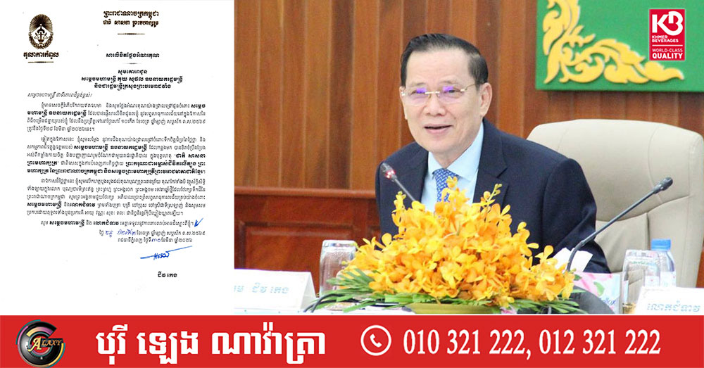 (ភ្នំពេញ)៖ ឯកឧត្តមបណ្ឌិត ជីវ កេង ប្រធានតុលាការកំពូល បានចេញសារលិខិតថ្លែងអំណរគុណ សម្ដេចមហាមន្ដ្រី គុយ សុផល ឧបនាយករដ្ឋមន្ដ្រី និងជារដ្ឋមន្ដ្រីក្រសួងព្រះបរមរាជវាំង ដែលបានផ្ញើសារលិខិតជូនពរ នូវសព្ទសាធុការពរជ័យ នៅក្នុងឱកាសនៃពិធីចម្រើនជន្មាយុ។
