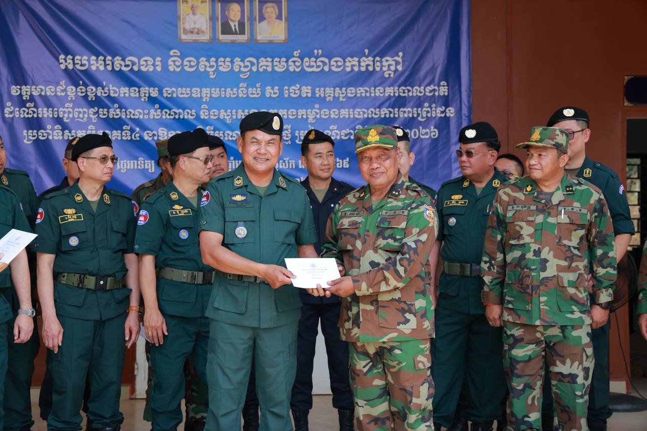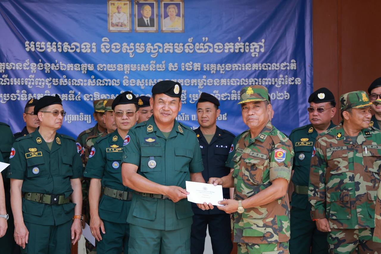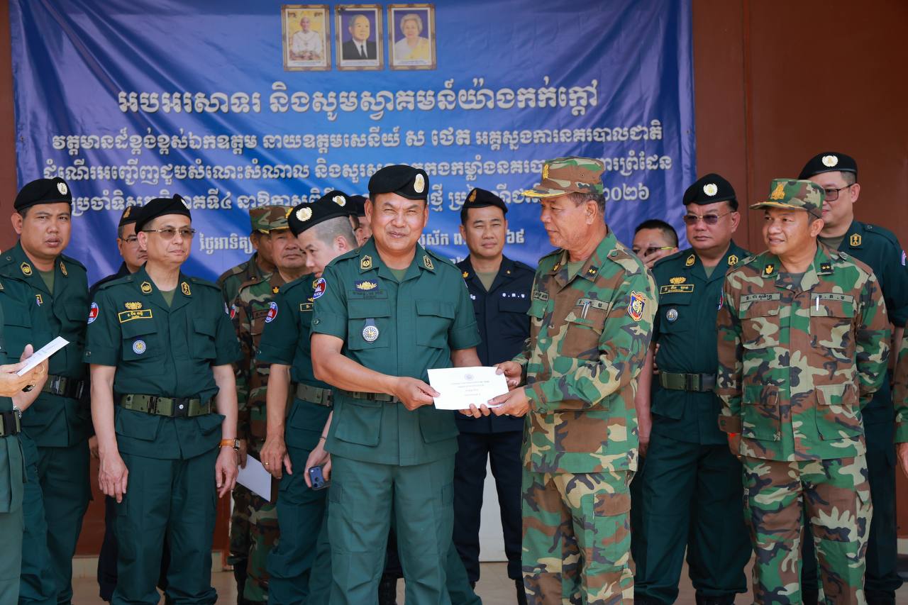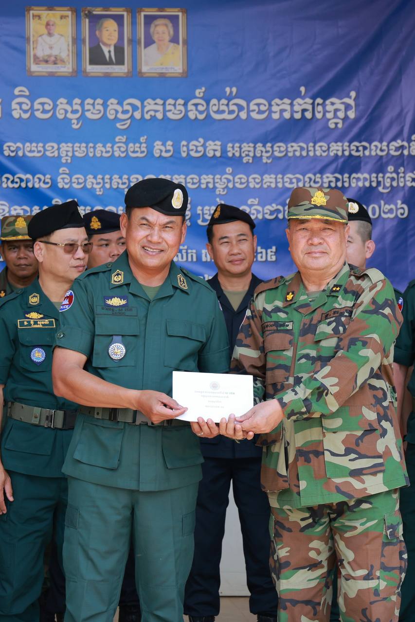 (ឧត្តរមានជ័យ)៖ នាយឧត្តមសេនីយ៍ ស ថេត អគ្គស្នងការនគរបាលជាតិ តំណាងលោកអភិសន្ដិបណ្ឌិត ស សុខា ឧបនាយករដ្ឋមន្ដ្រី រដ្ឋមន្ដ្រីក្រសួងមហាផ្ទៃ នៅព្រឹកថ្ងៃទី២៩ ខែមីនា ឆ្នាំ២០២៦នេះ បានអញ្ជើញជួបសំណេះសំណាល ជាមួយកម្លាំងនគរបាលការពារព្រំដែនទិសភូមិភាគ៤ នៅទីបញ្ជាការវរសេនាតូចនគរបាលការពារព្រំដែនគោកលេខ៩០៥ នៃស្នងការដ្ឋាននគរបាលខេត្តឧត្តរមានជ័យ ក្នុងឱកាសបុណ្យចូលឆ្នាំថ្មី ប្រពៃណីជាតិខ្មែរ។