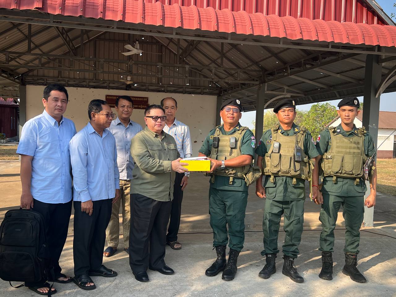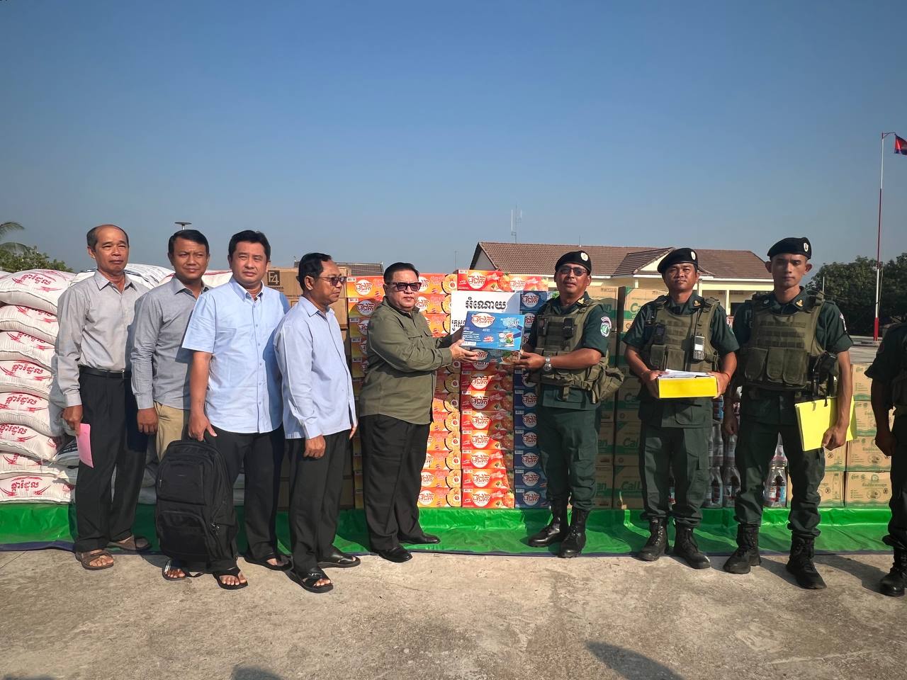 អំណោយដែលផ្តល់ជូននគរបាលការពារព្រំដែននៃកងវរសេនាតូច ទាំងពីរខាងលើរួមមាន គ្រឿងឧបភោគ បរិភោគ (អង្ករ ទឹកត្រី ទឹកស៉ីអ៉ីវ ត្រីខកំប៉ុង មី ស្ករស ស្ករគ្រាប់ កាហ្វេ ដំណាប់ទំពាំងបាយជូ ប៊ីចេង ប្រេងឆា) ព្រមទាំងឧបត្ថម្ភនូវថវិកាមួយចំនួនផងដែរ៕