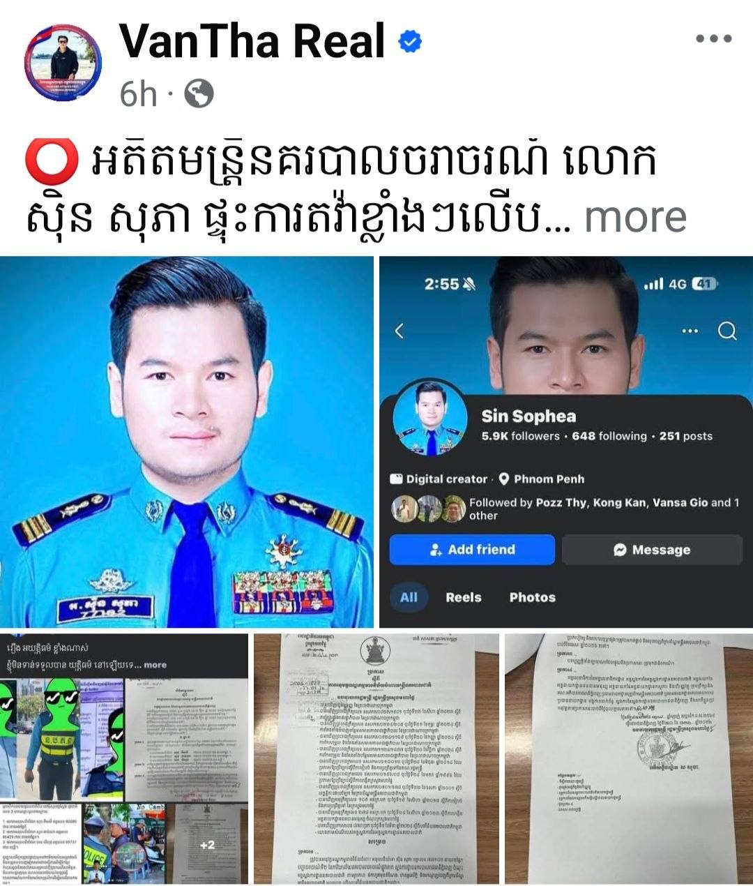 ស្នងការដ្ឋាននគរបាលរាជធានីភ្នំពេញ ចេញបំភ្លឺស្តីពីការការអនុវត្តន៍ល្មើសវិន័យលើឈ្មោះ ស៊ិន សុភា អតីតមន្ត្រីការិយាល័យនគរបាលចរាចរណ៍