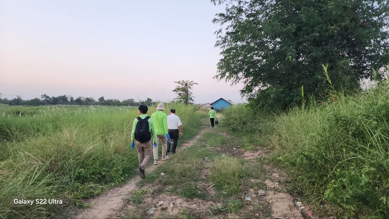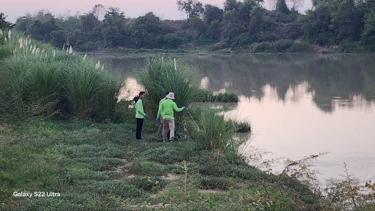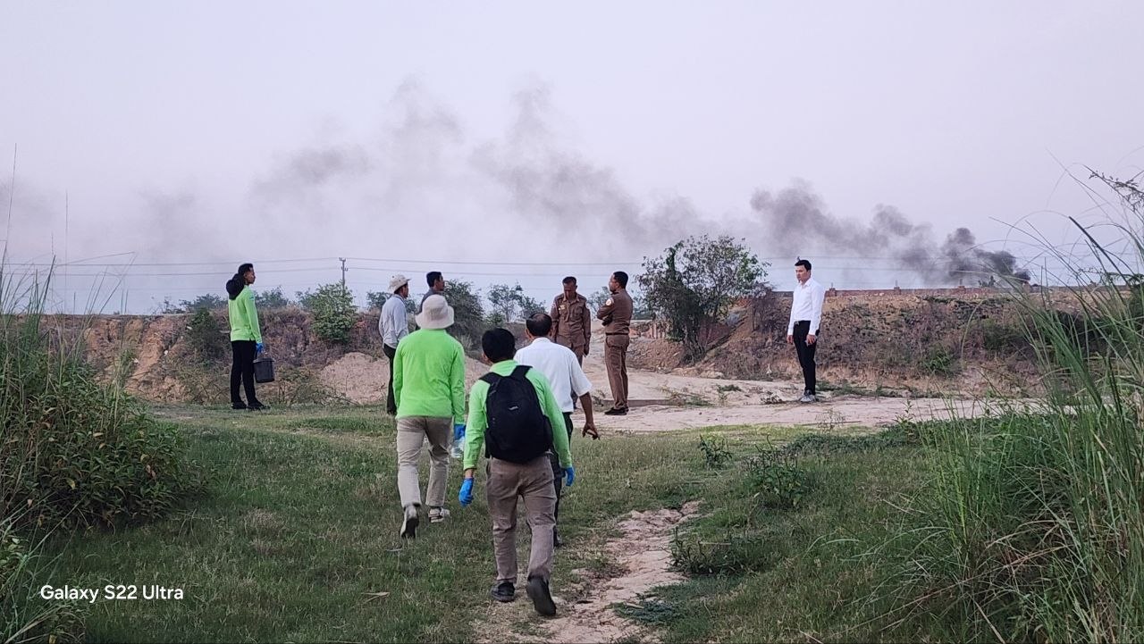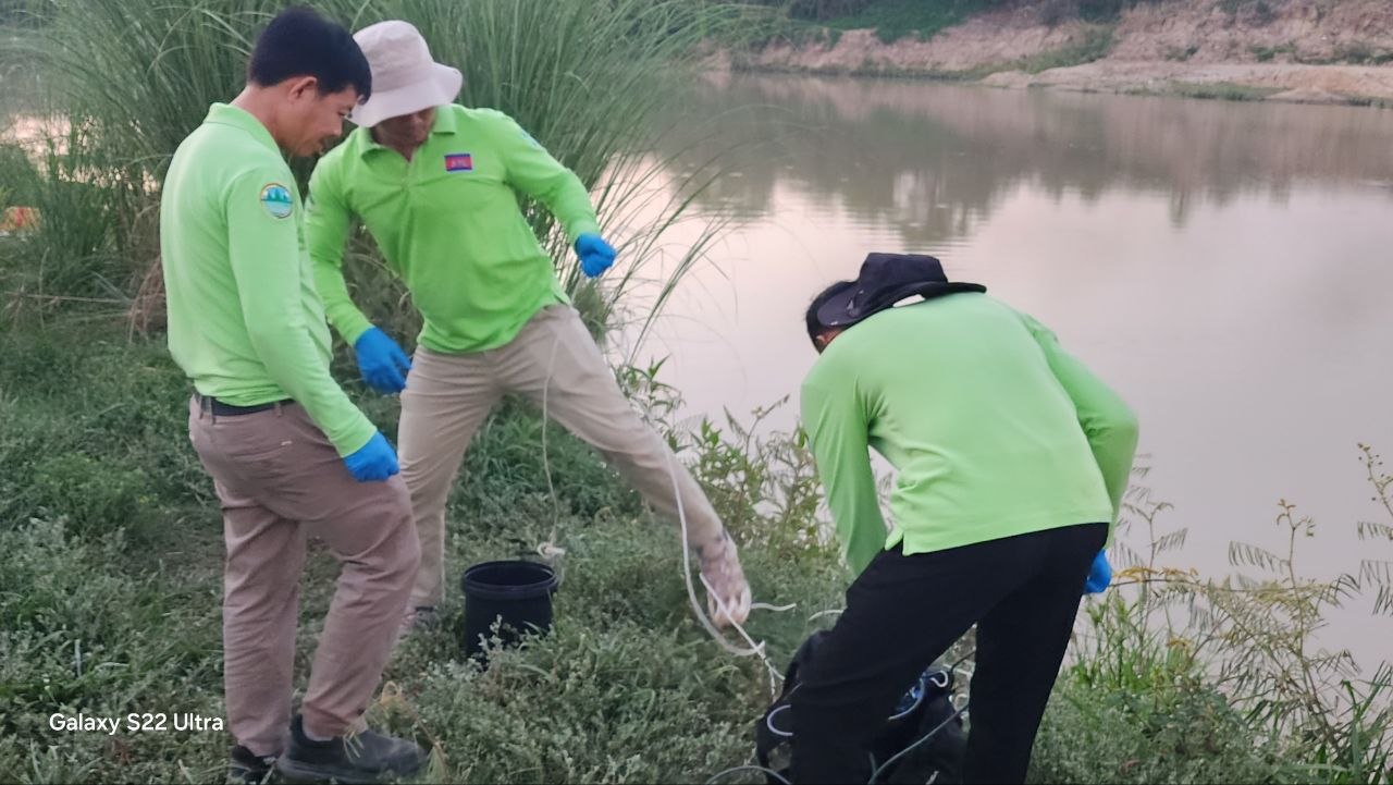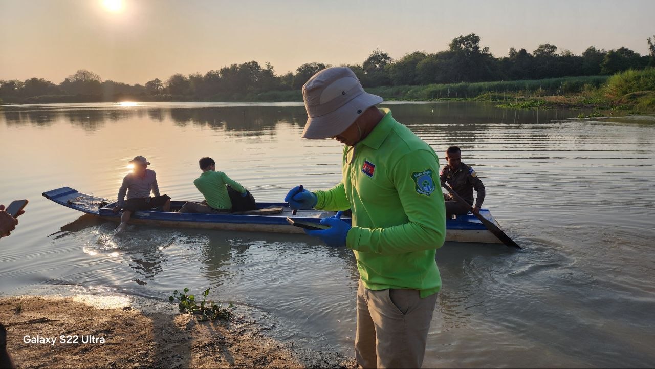 មន្ត្រីជំនាញក្រសួងបរិស្ថាន ចុះពិនិត្យទីតាំងស្ទឹងព្រែកត្នោត ដើម្បីរកមូលហេតុដែលបណ្តាលឱ្យពុលត្រីងាប់ជាច្រើនក្បាល